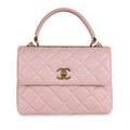 Oozing allure and sophistication, Chanel presents one of its most ravishing, highly acclaimed handbags, the Chanel Trendy CC Flap in Small. Crafted from light pink with lilac tones lambskin, the handbag features a sporty yet sharp silhouette. Its exterior is adorned in champagne gold hardware with a rather enlarged CC clasp and Chanel’s signature chain strap. Ideal for the lady who bears an adoration for Chanel handbags but wants to steer away from the classic collection without compromising on aesthetic, the Trendy CC flap can be worn both during the day and night.