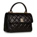 Oozing allure and sophistication, Chanel presents one of its most ravishing, highly acclaimed handbags, the Chanel Trendy CC Flap in Small. Crafted from black lambskin and punctuated with the fashion house’s coveted quilted design, the handbag features a sporty yet sharp silhouette. Its exterior is adorned in polished champagne gold hardware with a rather enlarged CC clasp and Chanel’s signature chain strap.
