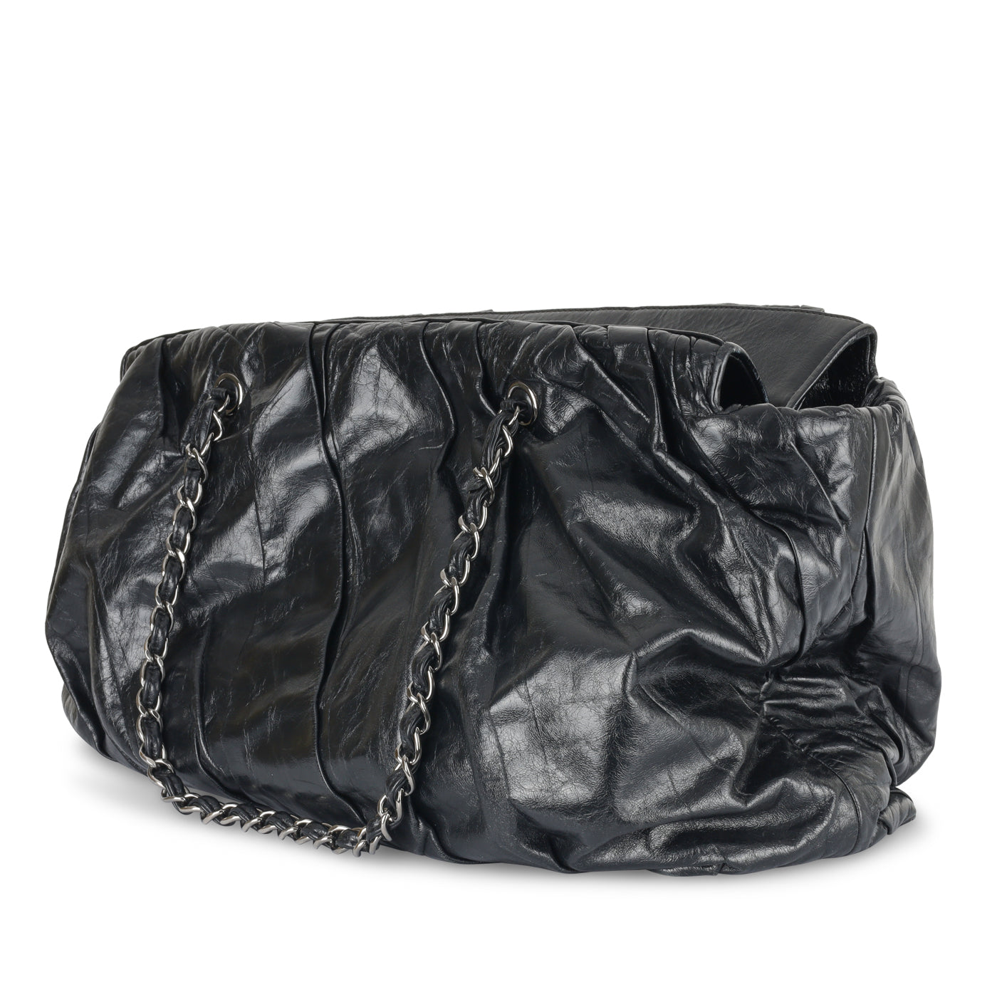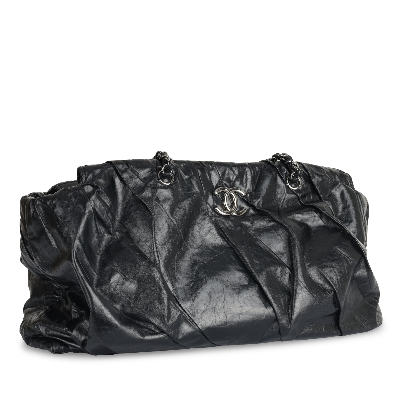 Crafted from shiny, glazed calfskin leather, Chanel presents their Twisted Tote Bag in black. For those that prefer a slouchy look, this bag has enough space to fit everything you would ever need to bring. Whether you're off to work or running errands, this Chanel is the perfect companion to accompany you.