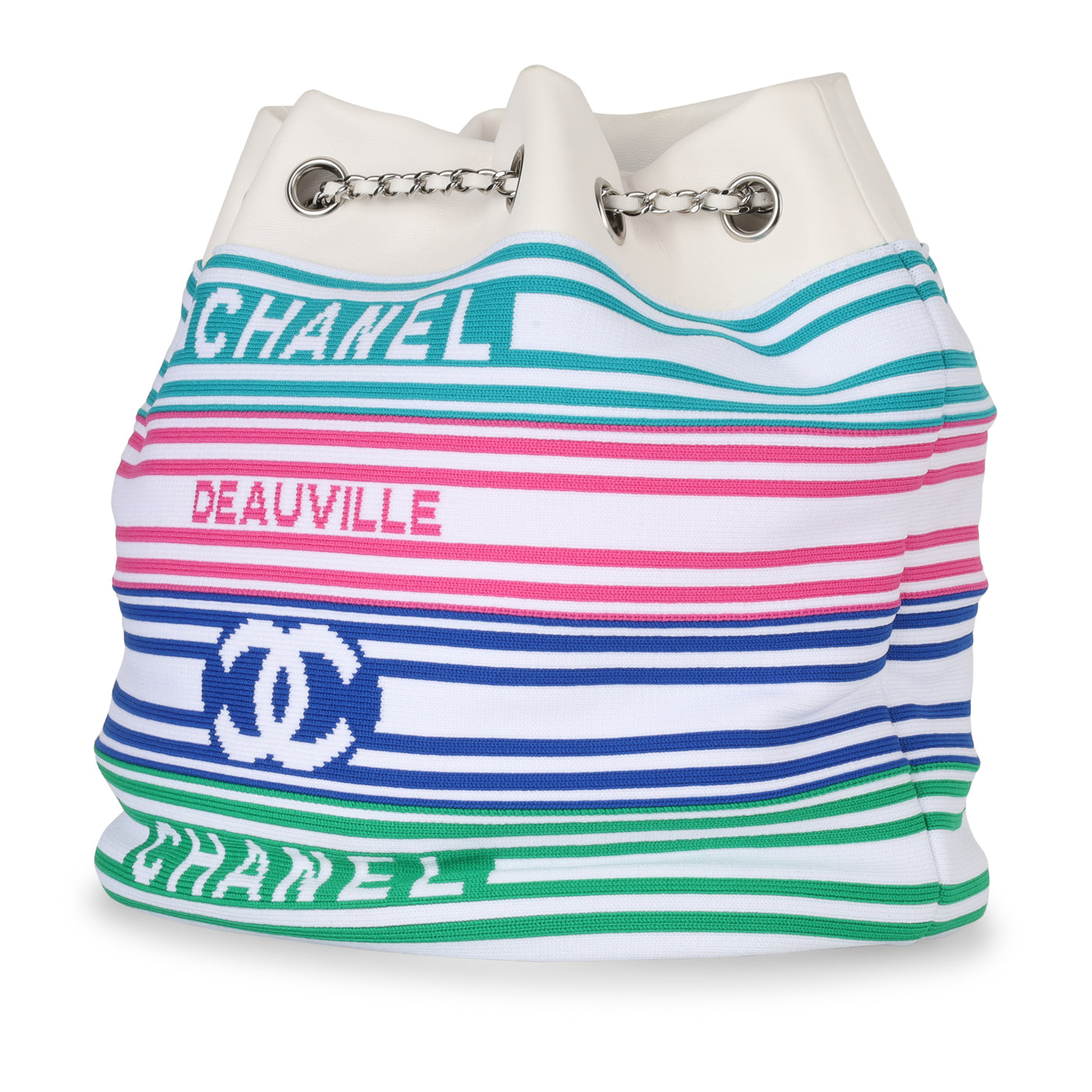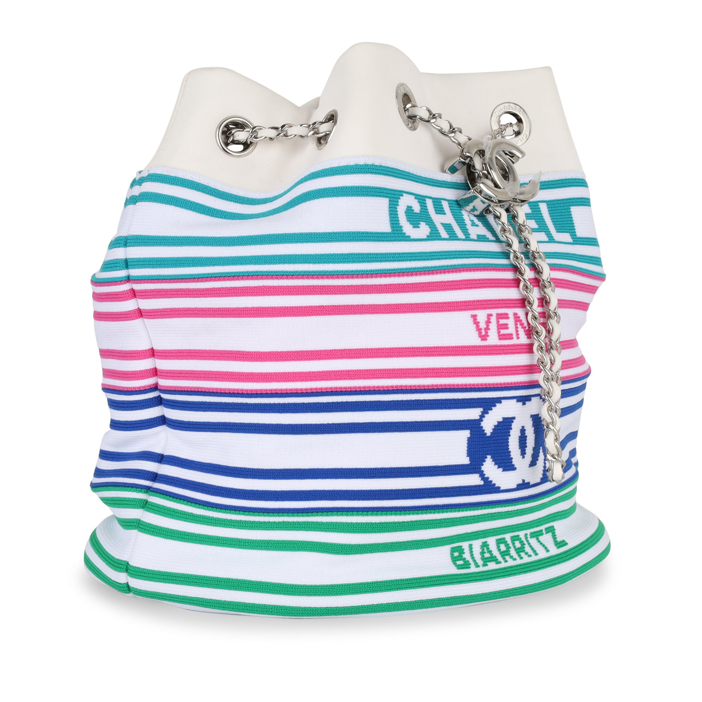 This unique bucket bag from Chanel exudes a fun and modern feel and its probably one of the coolest bags we've seen in a while. If you prefer to go against the grain of traditional Chanel, then this is the piece for you. Inspired from the towns on France, this piece is perfect for use at the beach, or as a summer day bag.