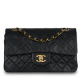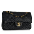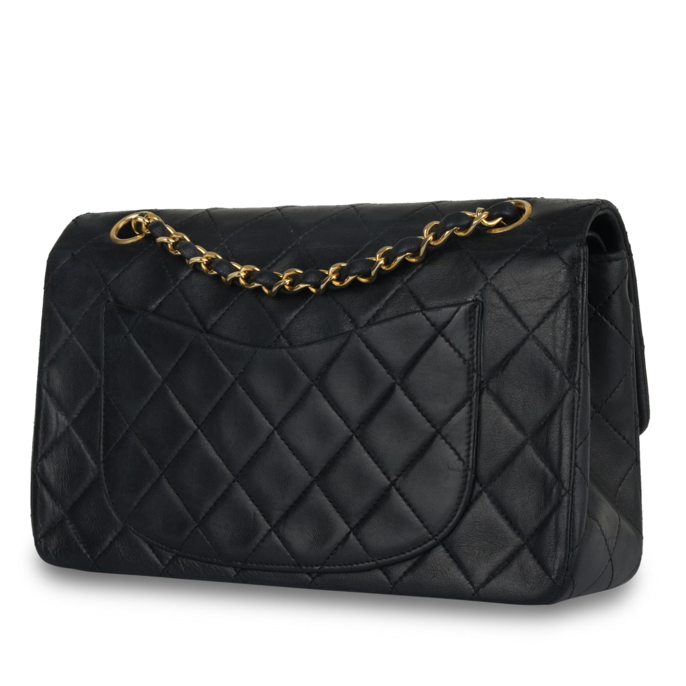 Crafted from Chanel's signature black lambskin leather, this vintage gem is an absolute must-have for any woman with a love for luxury. Featuring the brand's infamous interwoven chain / leather shoulder strap, double flap, and gold tone hardware, this classic bag is the perfect balance between fashion and function. Practical as well as stylish, this bag is a timeless piece that will remain in your wardrobe forever. The ideal accessory to take you from day to night, there's not much this bag won't go with.