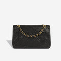 Crafted from Chanel's signature black lambskin leather, this vintage piece is an absolute must-have for any woman with a love for luxury. Featuring the brand's infamous interwoven chain / leather shoulder strap, double flap, and gold tone hardware, this classic bag is the perfect balance between fashion and function. Practical as well as stylish, this bag is a timeless piece that will remain in your wardrobe forever.