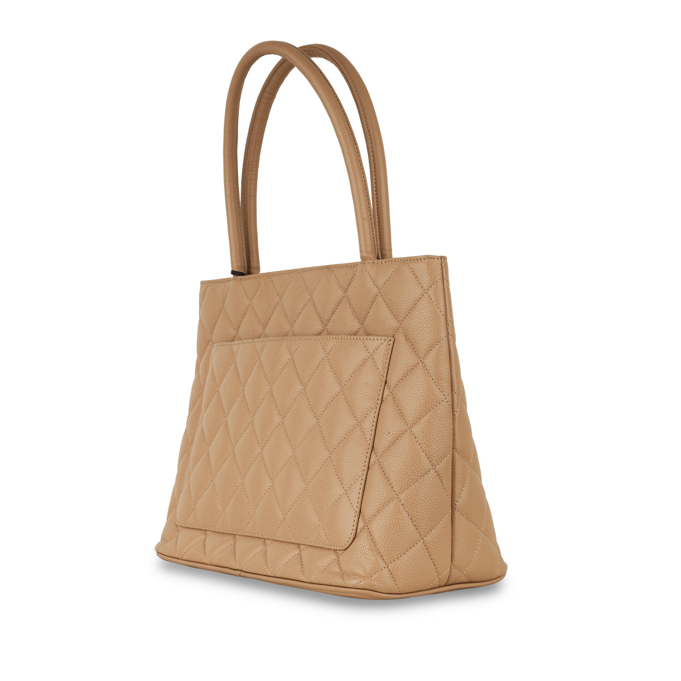 - Beige quilted caviar leather