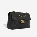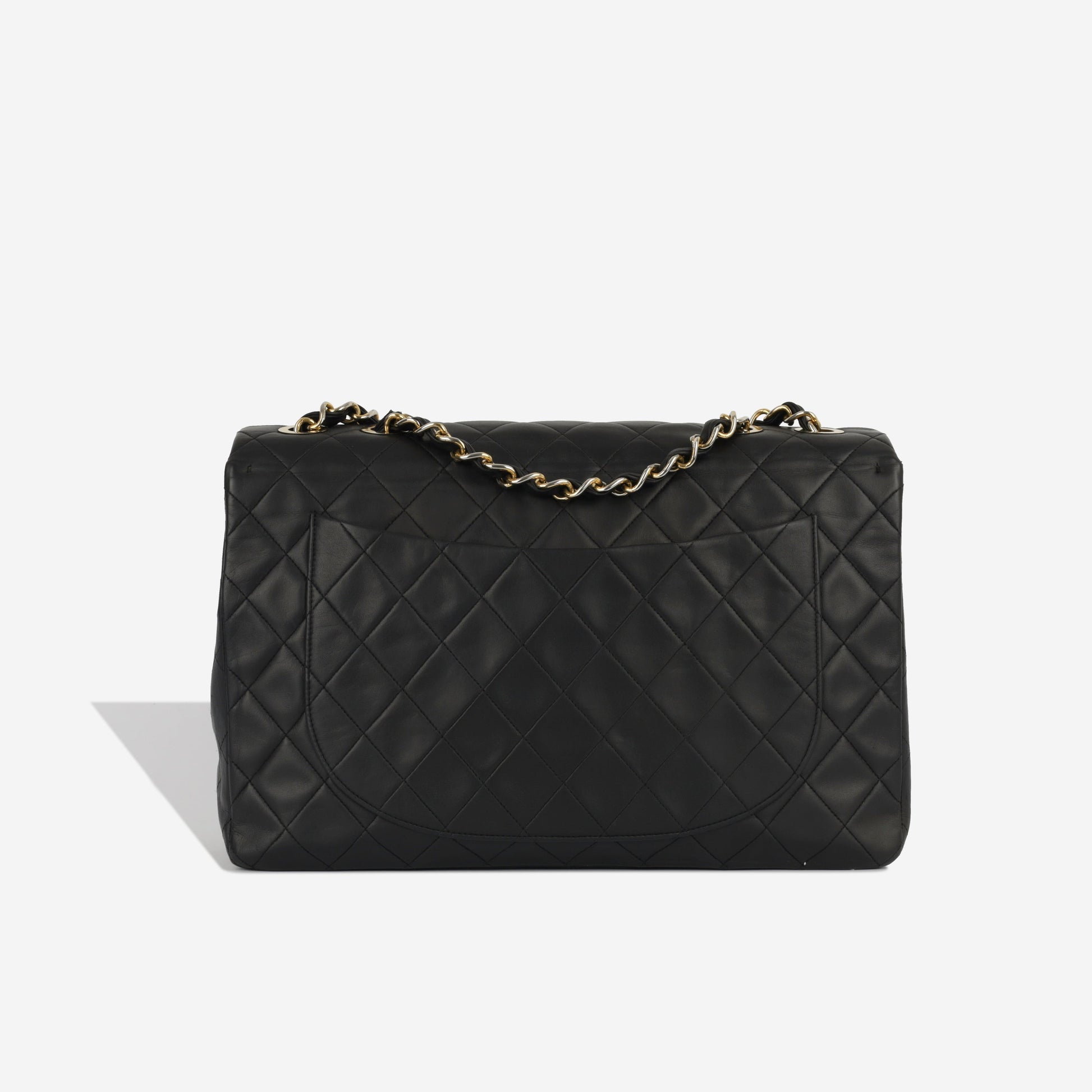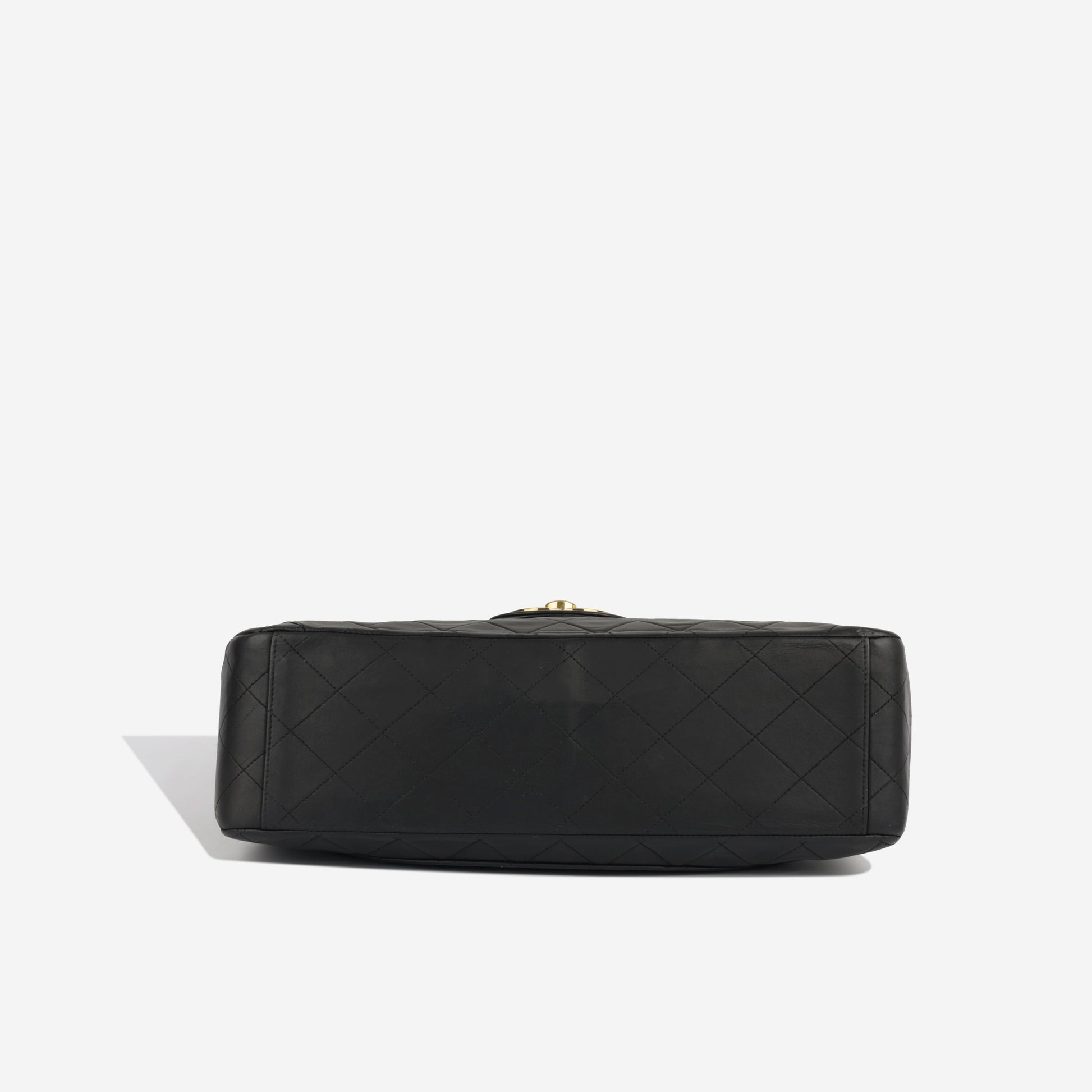 For all the vintage Chanel lovers, this one's for you. This rare XL Classic Flap is definitely not easy to find. With its smooth, quilted lambskin leather, gold tone hardware and XL CC logo clasp, this bag is elegant and sophisticated. Ideal for day-to-night usage, you can fit your whole world comfortably inside. Timeless, classic and the ultimate addition to any luxury handbag collection, this vintage gem is a true must-have.