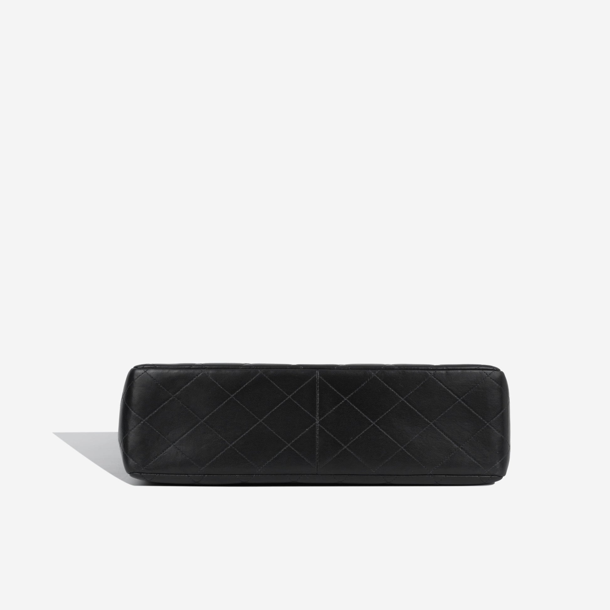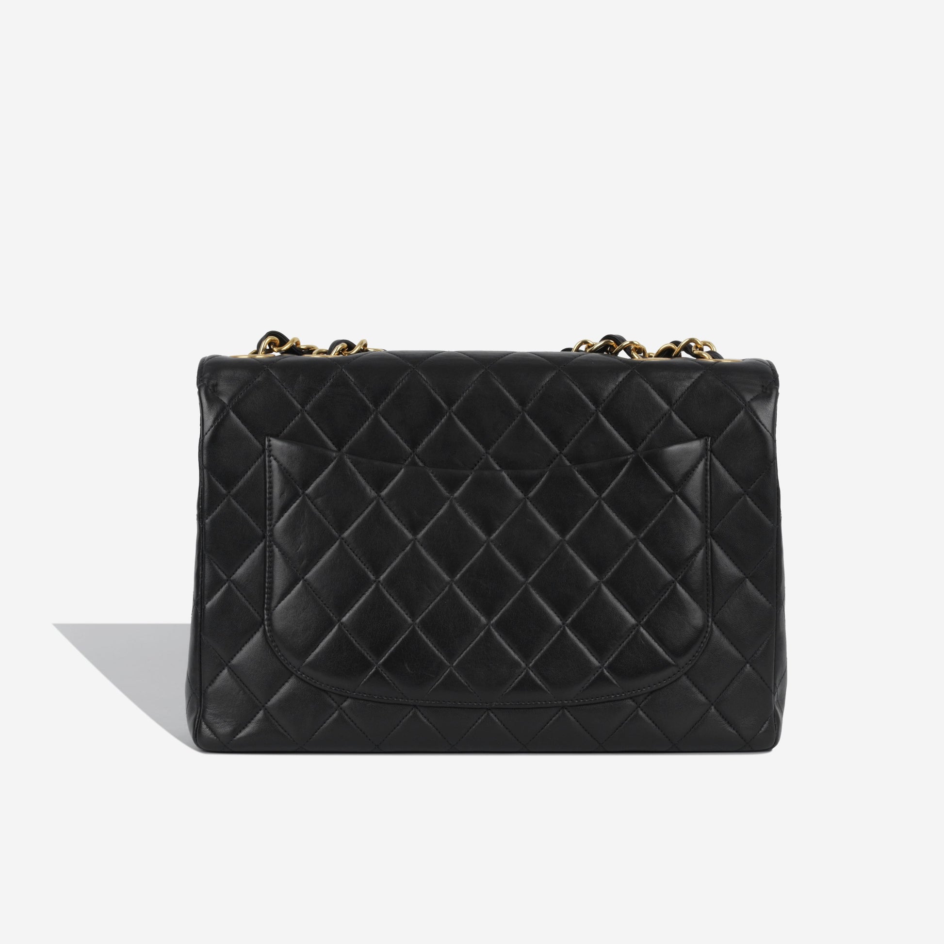 For all the vintage Chanel lovers, this one's for you. This rare XL Classic Flap is definitely not easy to find. With its smooth, quilted lambskin leather, gold tone hardware and XL CC logo clasp, this bag is elegant and sophisticated. Ideal for day-to-night usage, you can fit your whole world comfortably inside. Timeless, classic and the ultimate addition to any luxury handbag collection, this vintage gem is a true must-have.