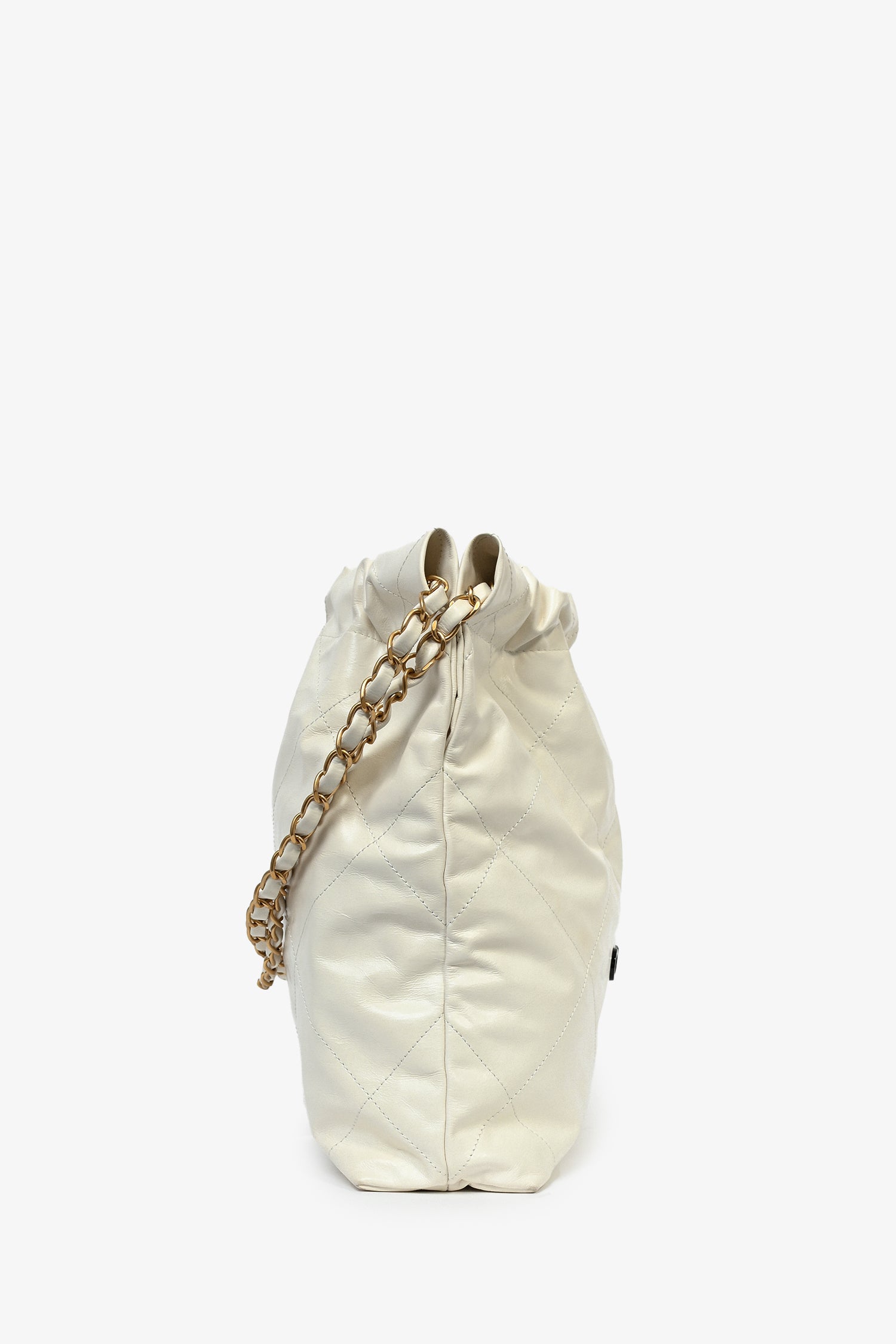 Pre-Loved Chanel™ White Leather Small Chanel 22 Shoulder Bag