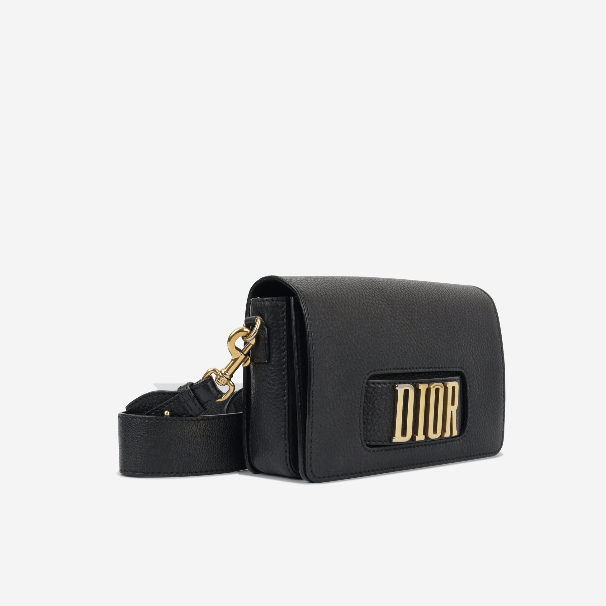 A logo and brand we all know and love. From the Diorevolution collection, Maria Grazia Chiuri presents this rocker chic, contemporary cross body bag - perfect for a modern young woman with a stylish edge and a love for luxury. Crafted from grained black leather and prominent gold tone hardware, this bag is both practical and stylish. Carry all your every day necessities in style by throwing them in the spacious interior compartment, as well as an additional slip pocket, and two mobile phone pockets.