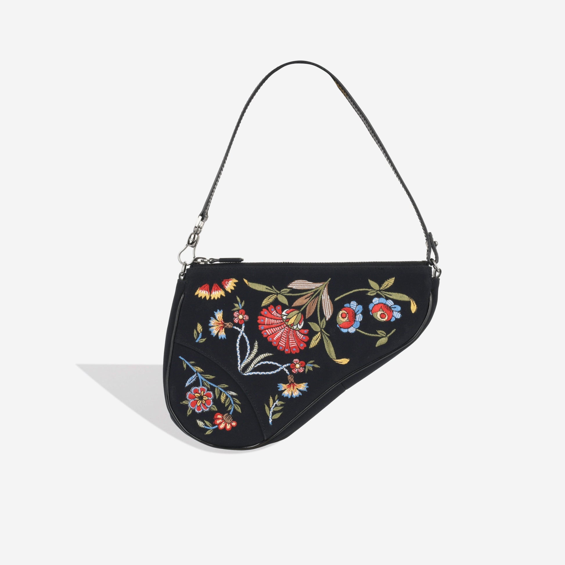This beautiful vintage Dior features a beautiful embroidered design which pops on top of the back nylon fabric. The Saddle Pochette is the epitome of the early 2000s, and was worn by many icons such as Carrie Bradshaw to Blair Waldorf. The unique silhouette of the Saddle bag makes this an instantly recognisable piece that belongs in any woman’s wardrobe. An absolute essential, the Saddle bag is a well-worthy addition to any luxury handbag collection and a true must-have for any vintage lover with a soft spot for Dior.