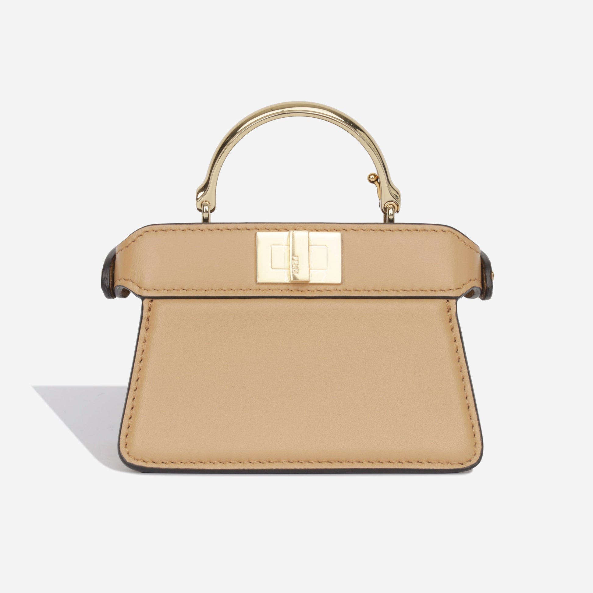 An iconic signature from the Italian fashion house, the Fendi Peekaboo is a timeless classic that will never go out of style. This micro edition can be used as a mini bag on its own, or added onto another peekaboo for dimension and detail. Sleek, stylish and effortlessly chic in the most discreet way possible, the Peekaboo was made for the refined woman with a love for luxury and an understated sense of style.