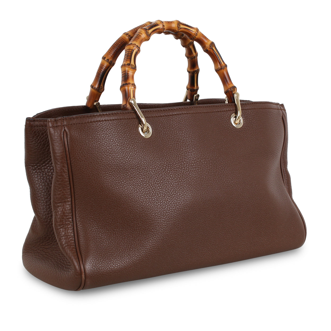 Gucci crafted its first bamboo handle bag in the 1940's and it still remains one of its most iconic bags. This beautiful bag is made from tan leather and is large enough to store all of your essentials for everyday use. Carry it by the bamboo handles or use the detachable shoulder strap for hands-free convenience. If you're a lover for all things Gucci, this is an essential piece for you.