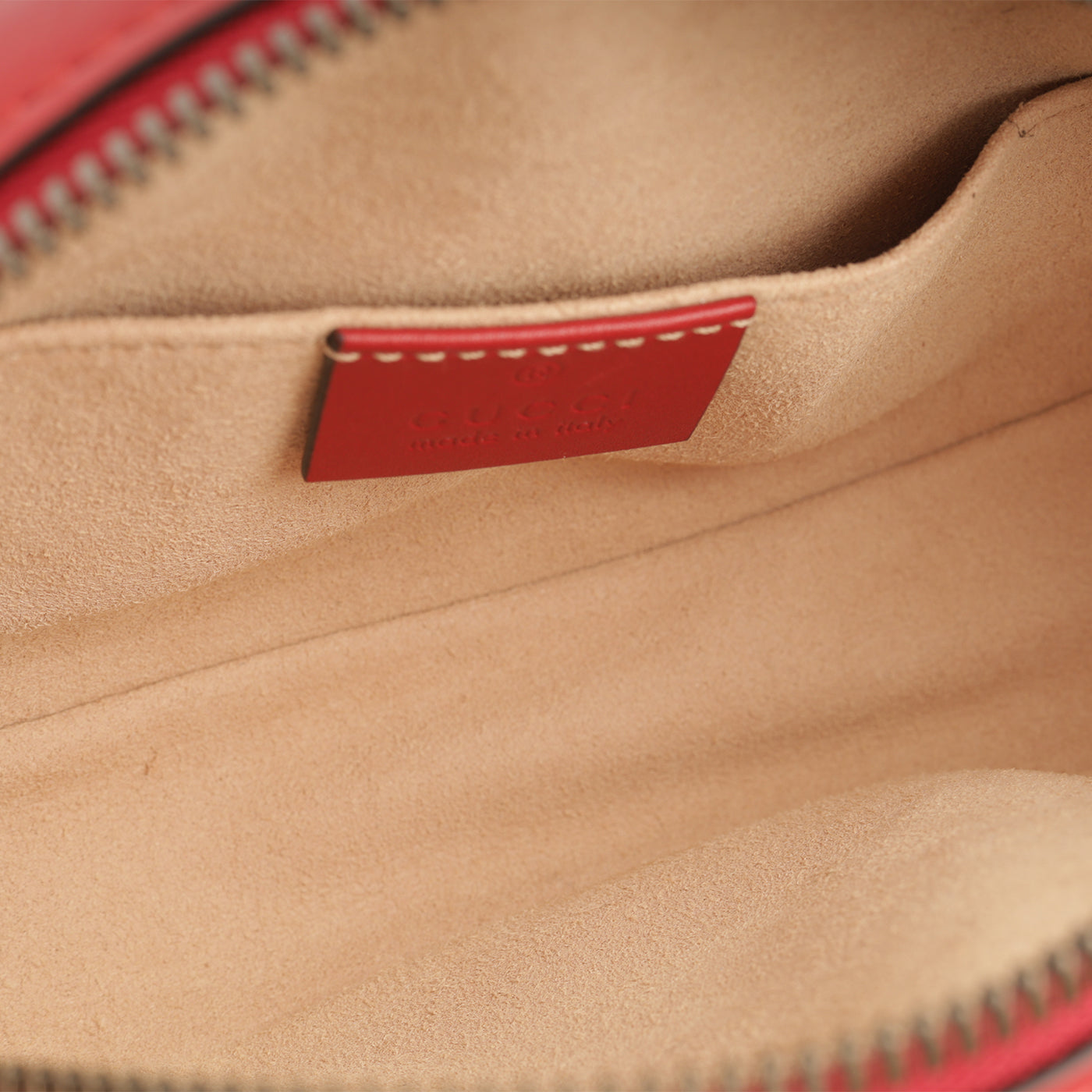 Compliment your wardrobe with a hit of red this year in none other than one of the most coveted handbags of this decade. Featuring a rounded shape and sporty appearance, this Gucci marmont belt bag is fast becoming every girl’s most priced possession. With its retro 90s influence, this bag is guaranteed to propel anyone into a sea of nostalgia.. Wear as a belt bag, hip bag or even across your chest to a memorable look worthy of being on a catwalk of its own.