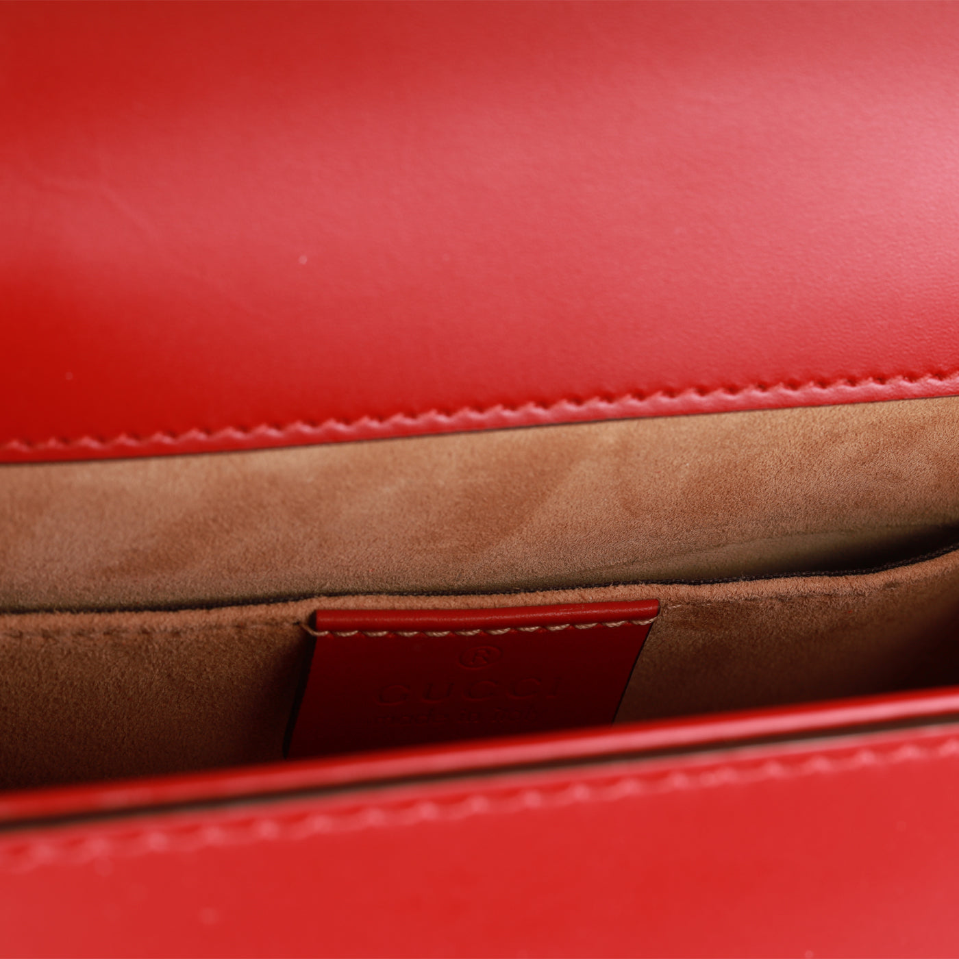 The Gucci Sylvie is one of those bags that became a classic the moment it landed in stores. Featuring the brand’s signature green and red front fabric stripe and a charming gold tone hardware chain strap, this mini Gucci is an absolute must-have, and iconic piece to own from the brand.