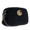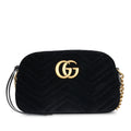 The Gucci Marmont marmont bag is a perfect compact bag to use day or night. The unique logo plaque has been revived from their archives of the 70’s era for the brand, and the chevron stitching brings the bag back to modern day and adds a little bit of interest to the eye.