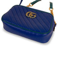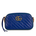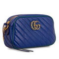 The Gucci Marmont matelassé camera bag is a perfect compact bag. The unique logo plaque has been revived from their archives of the 70’s era for the brand, and the blue will add a pop of colour to all your monochrome outfits. The chevron stitching brings the bag back to modern day and adds interest a little bit of interest to the eye. This bag features a chain and leather strap which makes it the perfect sophisticated crossbody for day or night, and gives you hands free access.