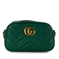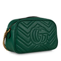 The Gucci Marmont matelassé camera bag is a perfect compact bag. The unique logo plaque has been revived from their archives of the 70’s era for the brand, and the green will add a pop of colour to all your monochrome outfits. The chevron stitching brings the bag back to modern day and adds interest a little bit of interest to the eye. This bag features a chain and leather strap which makes it the perfect sophisticated crossbody for day or night, and gives you hands free access.