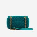 The Gucci Marmont Marmont bag is a perfect compact bag to use day or night. The unique logo plaque has been revived from their archives of the 70’s era for the brand, and the chevron stitching brings the bag back to modern day and adds a little bit of interest to the eye.