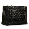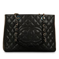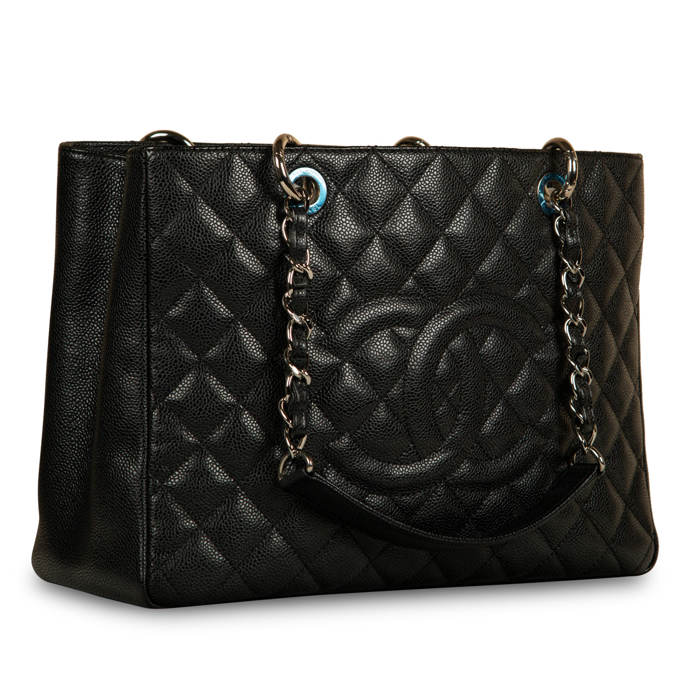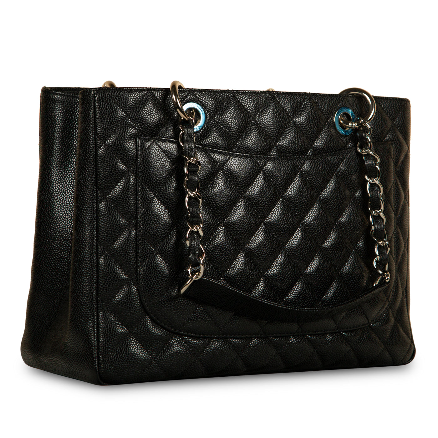 Chanel presents one of its most exclusive and coveted handbags; the Grand Shopping Tote. The bag is presented in durable caviar leather and features the brand’s iconic quilted pattern alongside a large CC stitched logo. Its spacious interior features two open compartments separated by a middle zip pocket. A timeless piece that will never go out of style, the GST remains one of the most in-demand Chanel bags - despite unfortunately being discontinued in 2015. A classic handbag from the brand, the GST is that bag you'll use for any and every occasion. Going to work? Running errands? Dinner party with friends? Travelling? The GST is the ideal companion to have by your side. Sleek, stylish and sophisticated, the GST is a bag you'll have forever and one that you'll never fall out of love with. A well-worthy investment and a true must-have in any luxury handbag collection.
