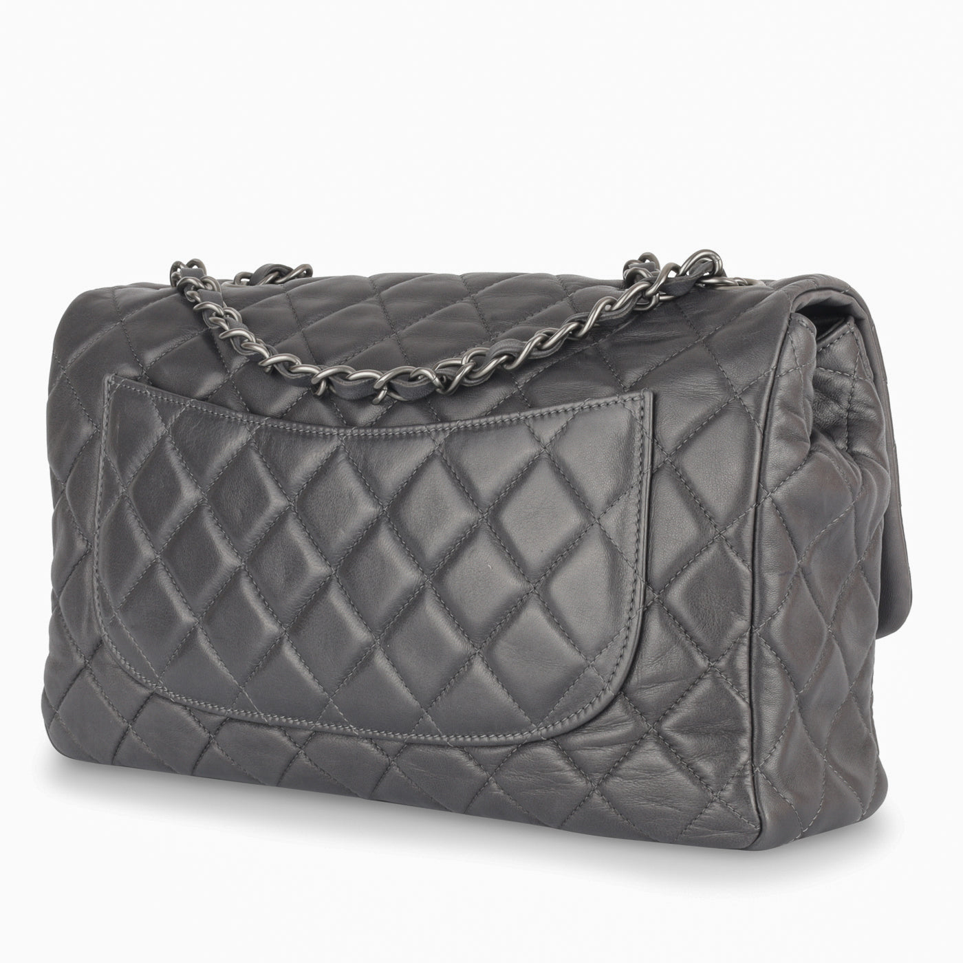 This special edition of the Jumbo Flap Bag is one of the most popular sizes of them all. For the people who like to carry a lot with them wherever they go in style, then this is the bag for you. Featuring its infamous quilted lambskin leather in deep grey and interwoven chain / leather strap, the Jumbo is an absolute must-have in any luxury handbag collection.