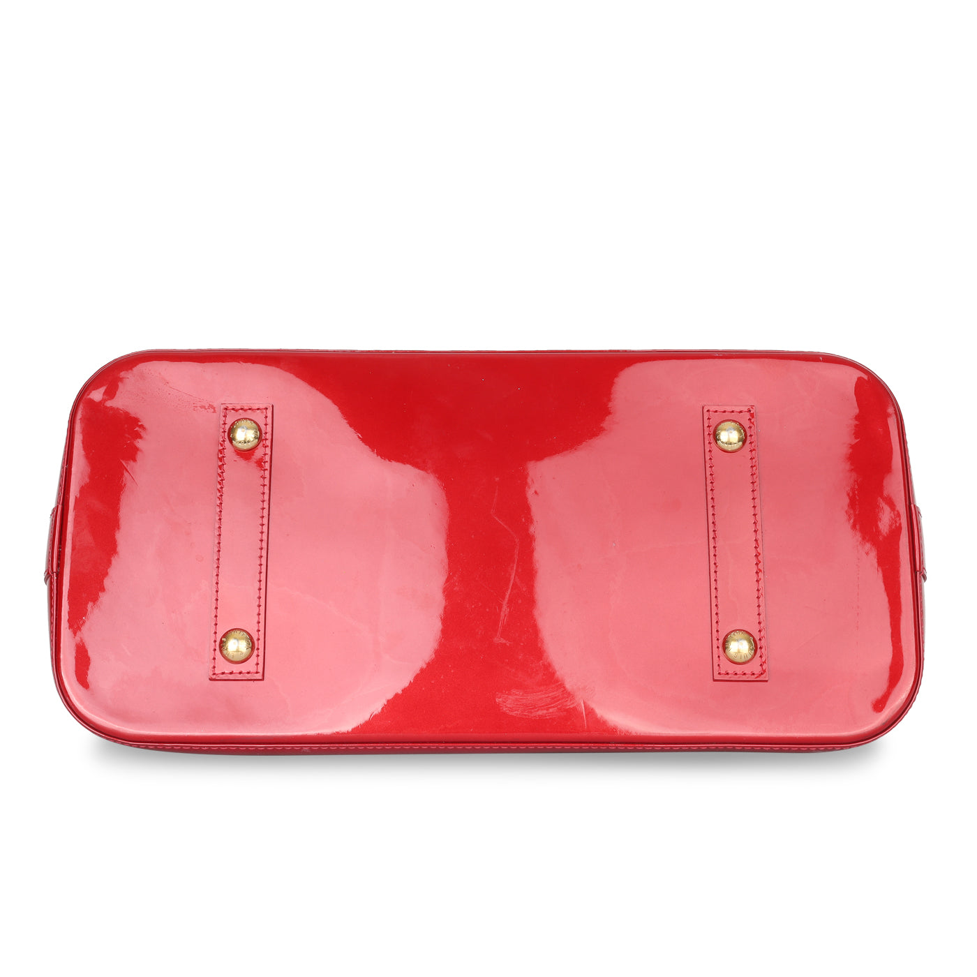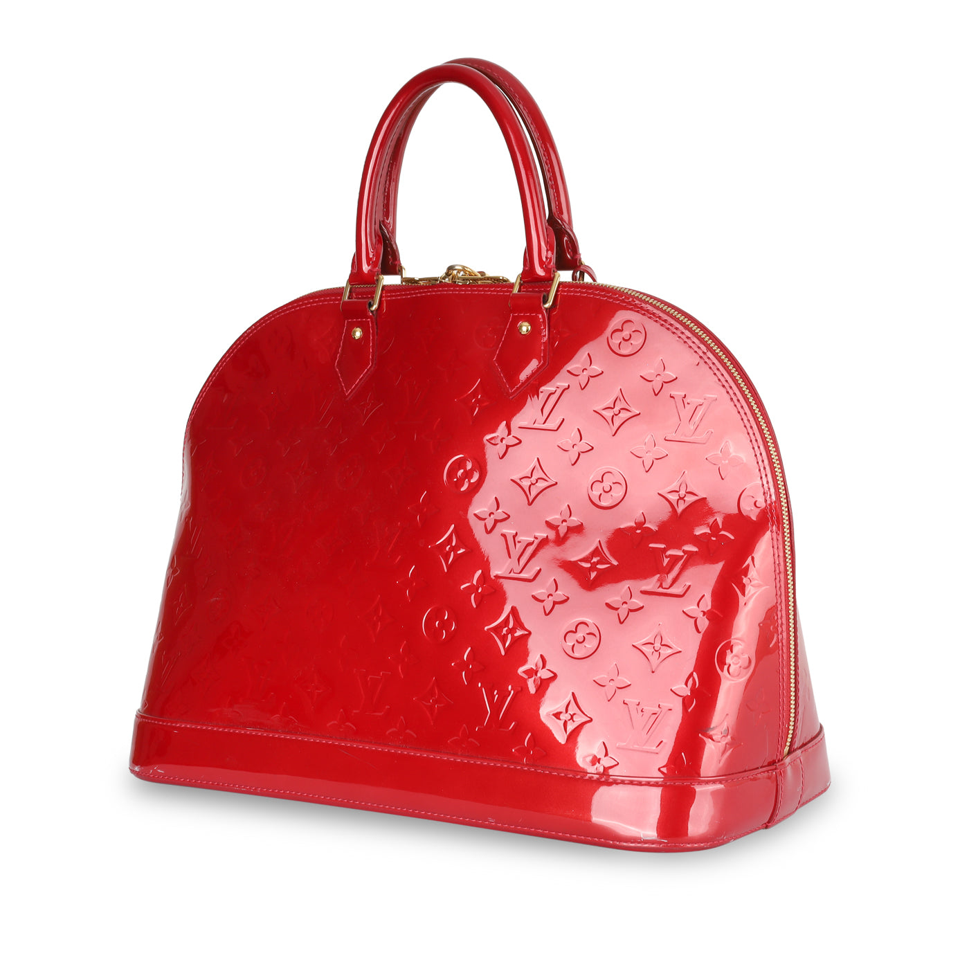 Louis Vuitton presents the charming Alma GM in Red Vernis Leather with all its alluring charm. Featuring the fashion house’s quintessential monogram in a vernis finish, the handbag is the epitome of both sophistication and femininity.
