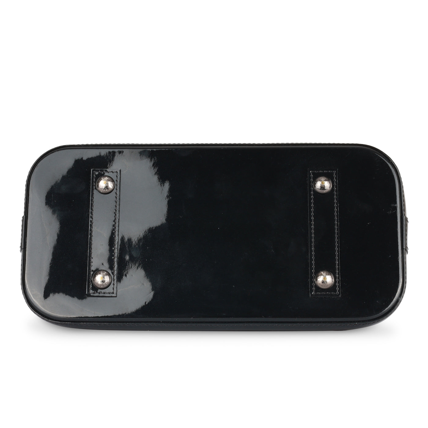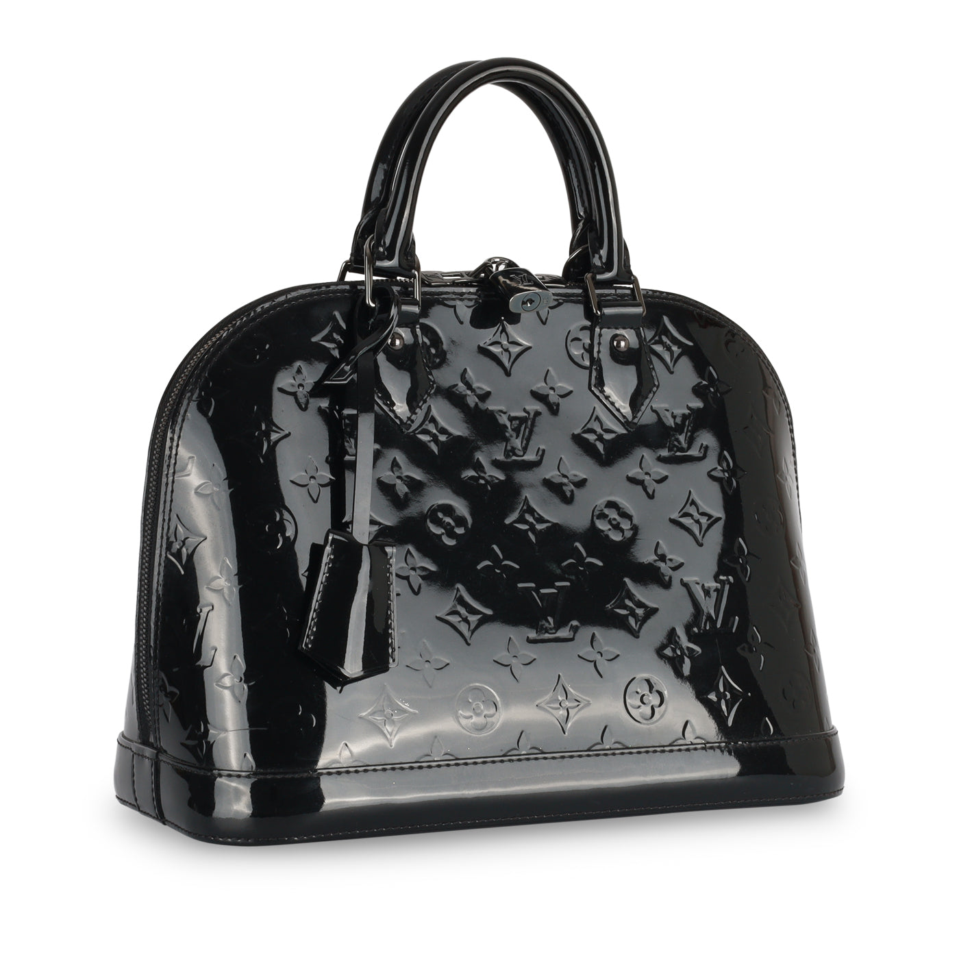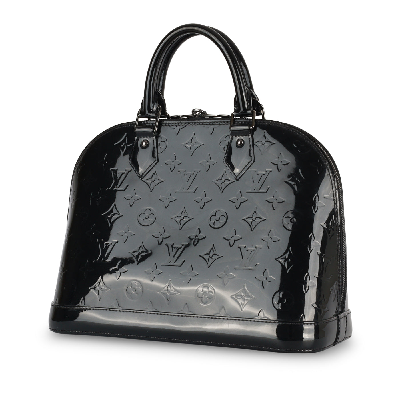 Carefully crafted in shimmering, black monogram vernis leather, Louis Vuitton presents their iconic Alma bag. A signature piece for the brand, the Alma is one of the most popular LV bags and is constantly in-demand. With their monogram logo print embossed into the leather, this bag is the perfect example of a "subtle statement" piece. It's monogram logo is less prominent compared to their canvas bags, but the neutral classic hue complimenting the eye-catching patent leather makes this a piece that will turn heads wherever you go.