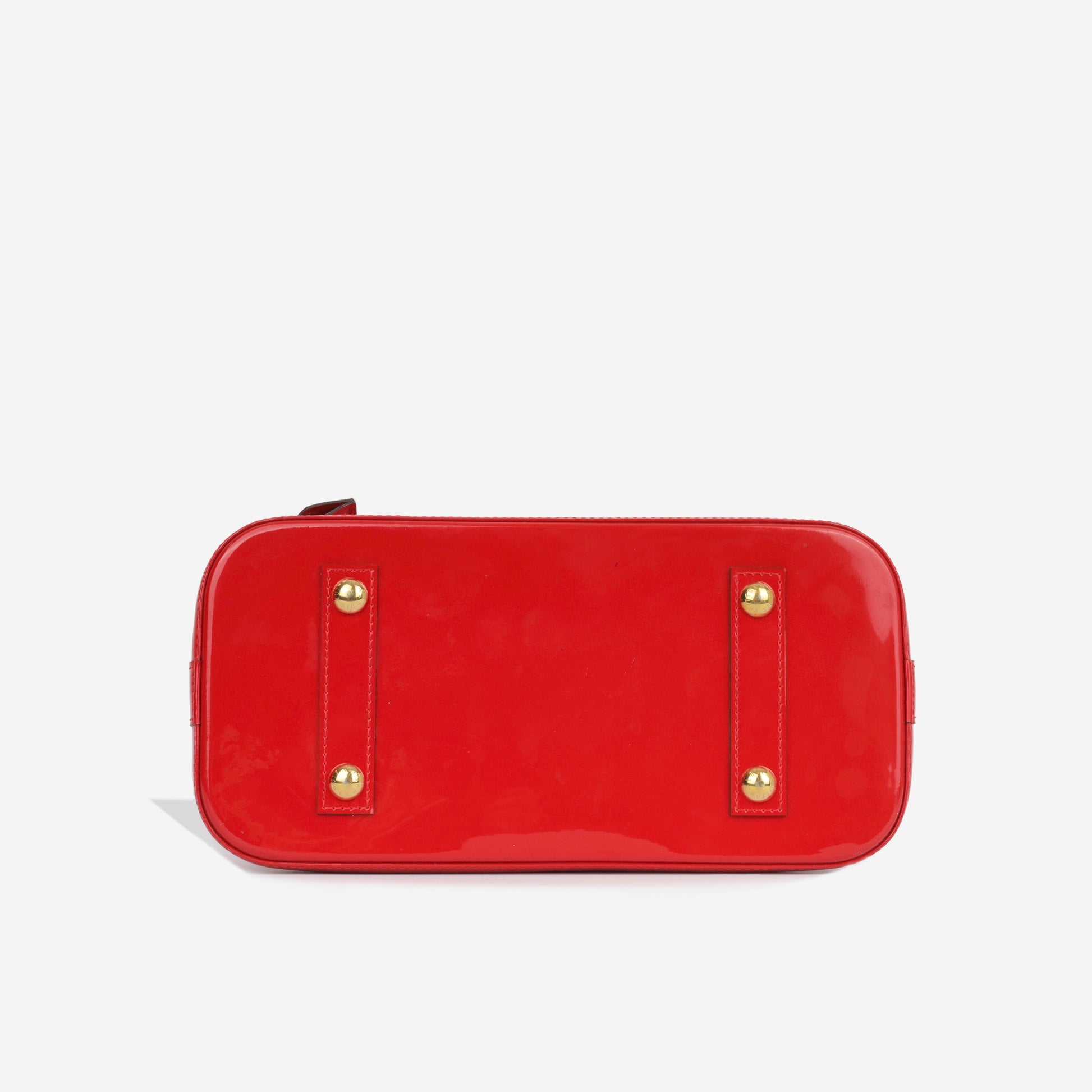 Carefully crafted in shimmering, green monogram vernis leather, Louis Vuitton presents their iconic Alma bag. A signature piece for the brand, the Alma is one of the most popular LV bags and is constantly in-demand. With their monogram logo print embossed into the leather, this bag is the perfect example of a "subtle statement" piece.