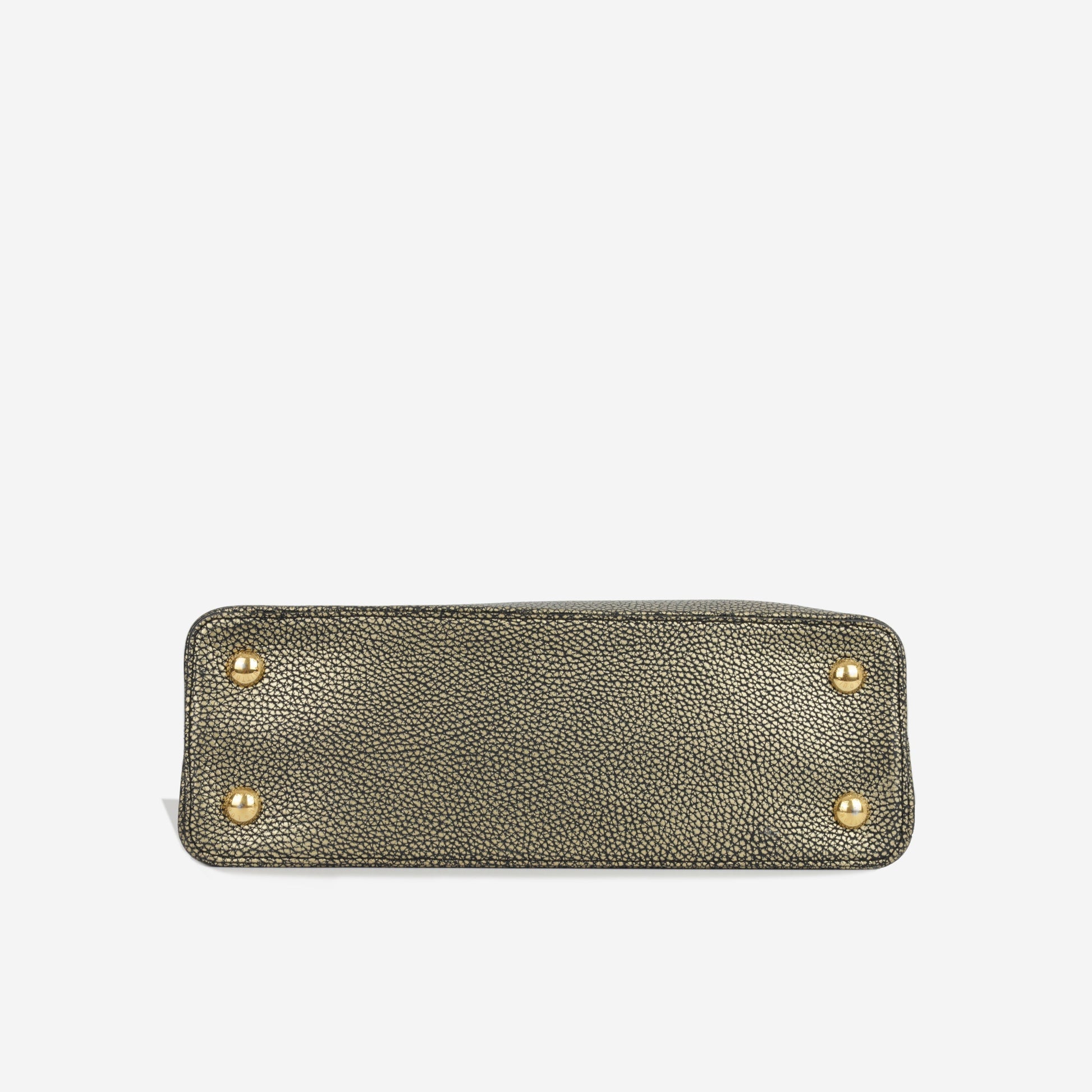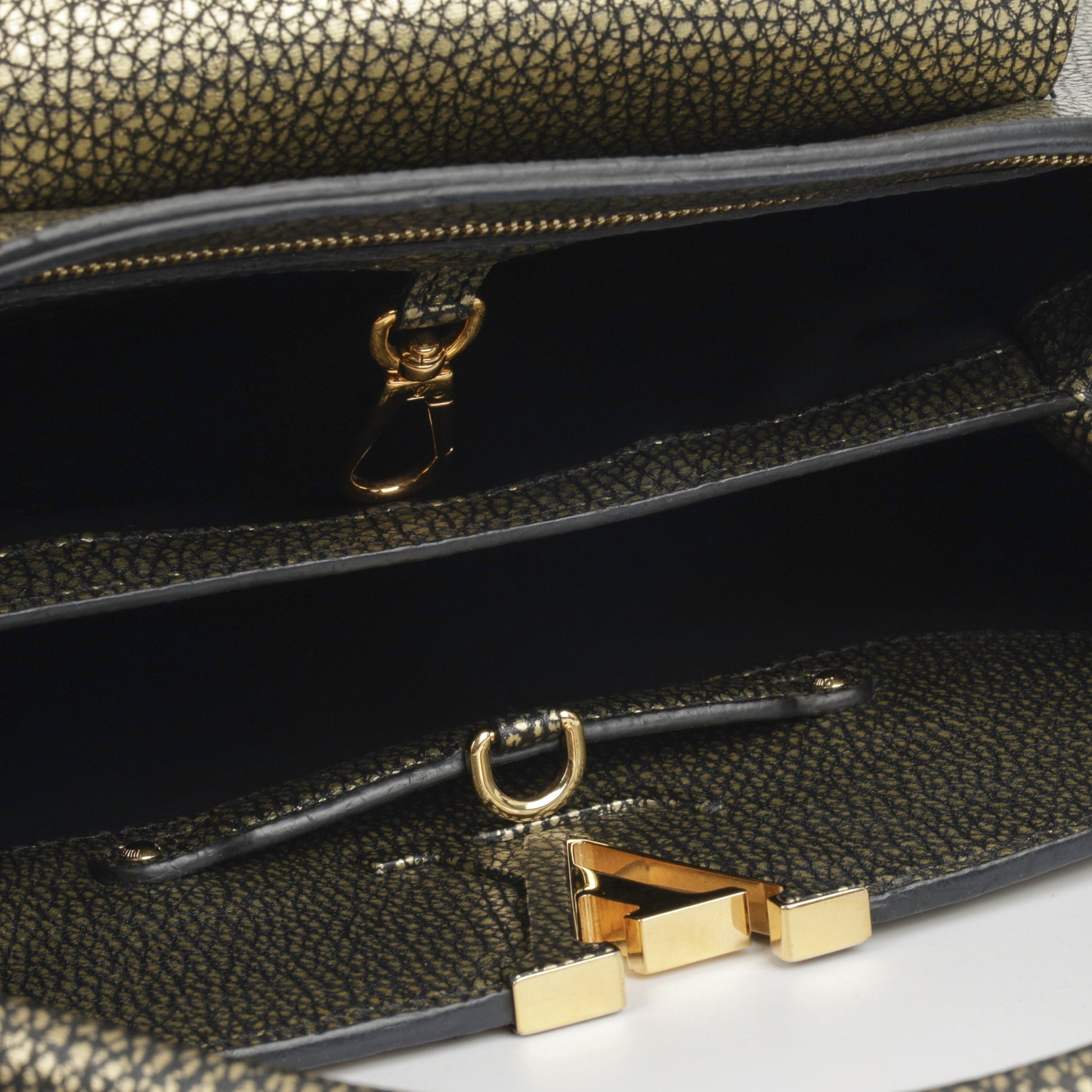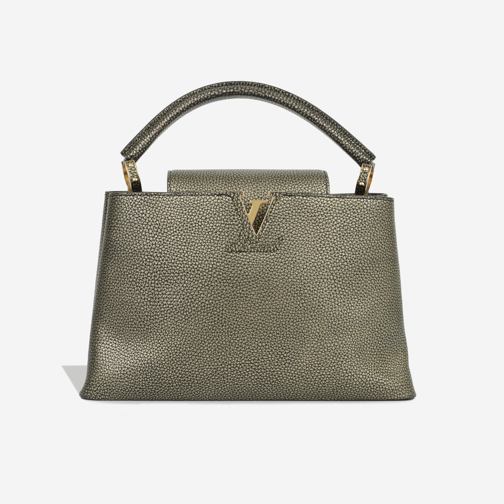 The Capucines MM by Louis Vuitton is the perfect city chic bag. With modern lines and statment patterns, this will stand out from the crowd. The Capucines line takes its name from the Rue des Capucines in Paris, where Louis Vuitton opened his first store in 1854. Wear the flap on the outside to show the monogram flower, or tuck the flap into the top compartment to reveal the LV initials in stunning gold hardware.