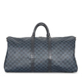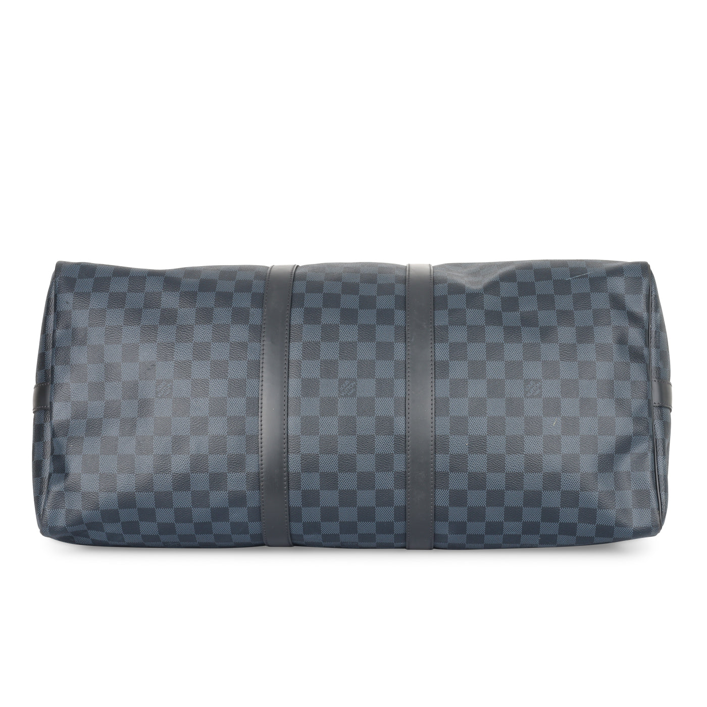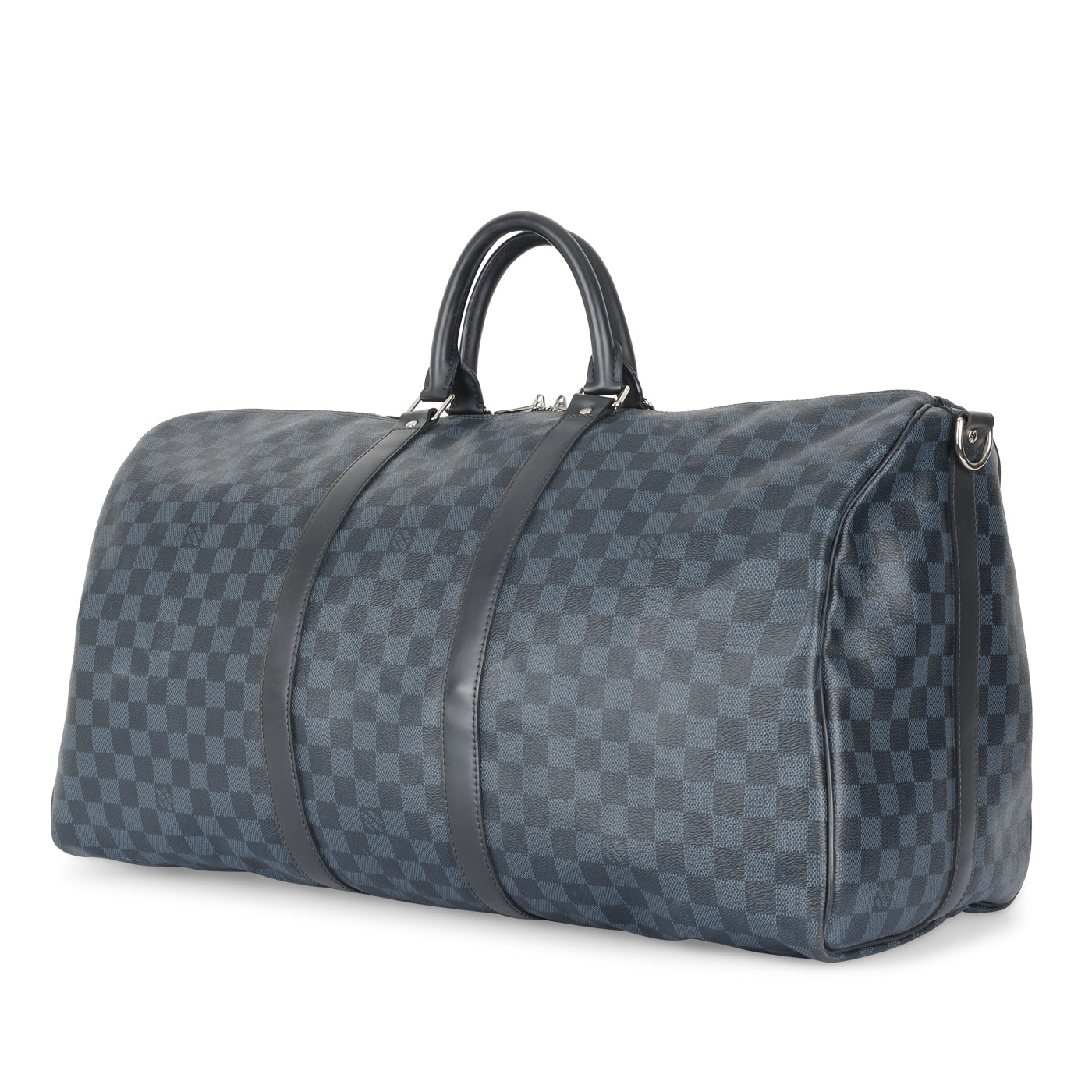 Presenting the classic Keepall duffle bag from Louis Vuitton - allowing you to travel in style wherever you go. With its iconic damier print in cobalt, featuring two black leather panels down the front, the Keepall is almost a necessity for any fashion lover when travelling. In addition to its sleek and sophisticated appearance, the LV Keepall definitely lives up to its name by offering an extremely spacious interior where you can carry pretty much everything you would ever need.