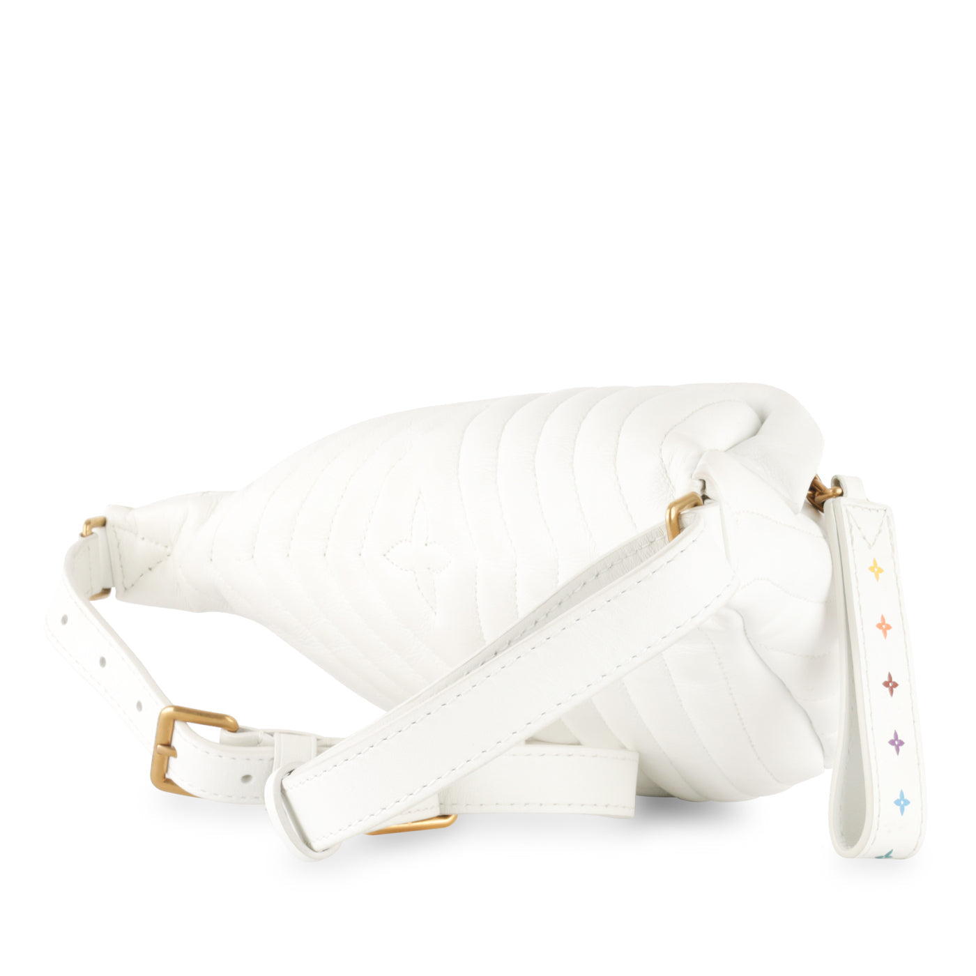 This unique belt bag from Louis Vuitton is crafted from White quilted leather and accented with an enlarged LV hardware logo. This waist bag combines a street-inspired style with a high-end, casual-chic aesthetic. It's the ideal accessory to accompany you wherever you go, and the belt keeps you hands free. Stylish, versatile and a well-worthy addition to any luxury handbag collection, this bumbag is a timeless accessory you’ll never fall out of love with.
