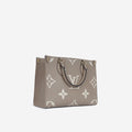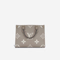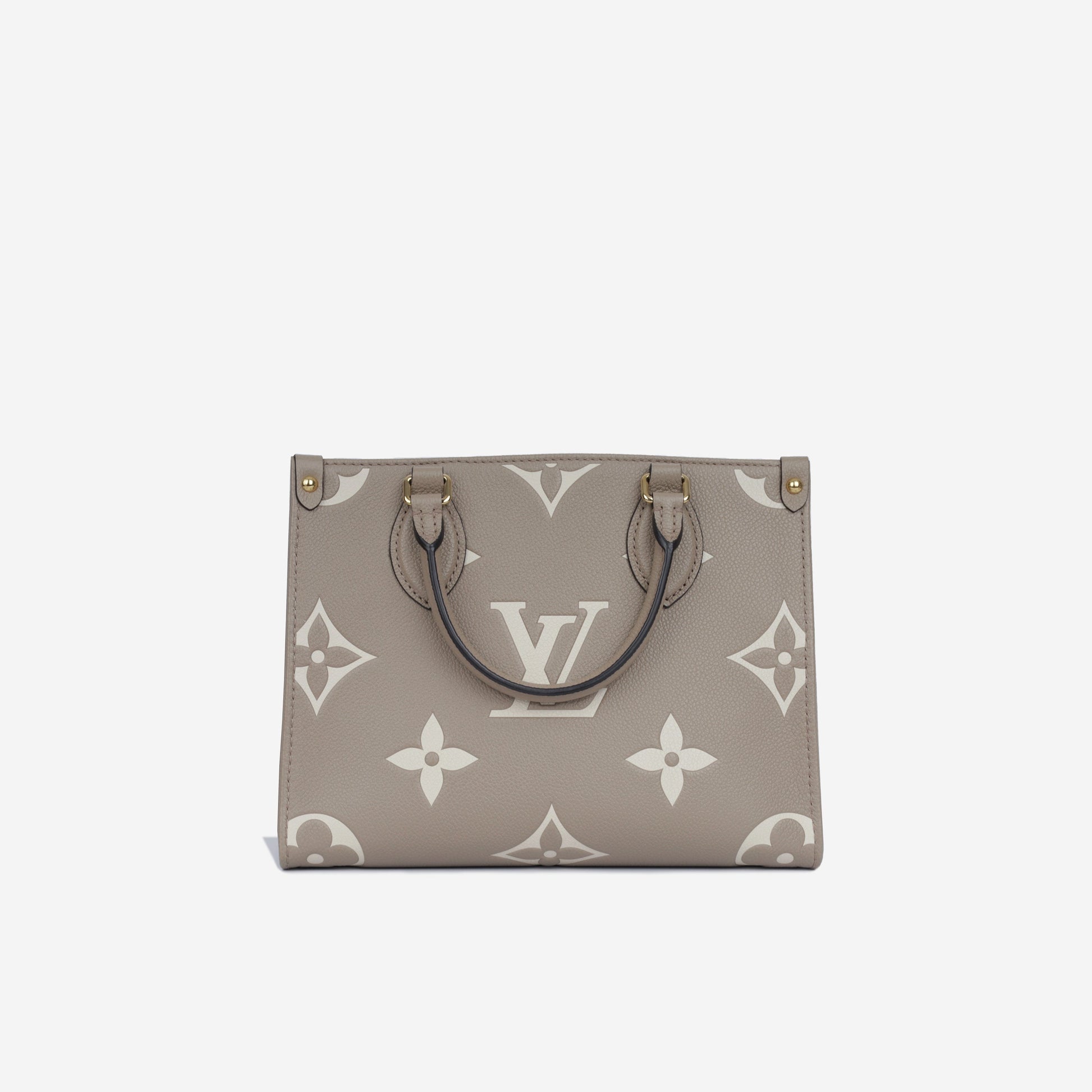 The Onthego is inspired by Louis Vuitton's iconic Sac Plat from 1968, crafted from bicolour empreinte leather which is embossed with the enlarged monogram print. The grained cow leather makes this the perfect day bag with enough space for all your daily essentials.