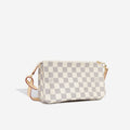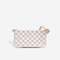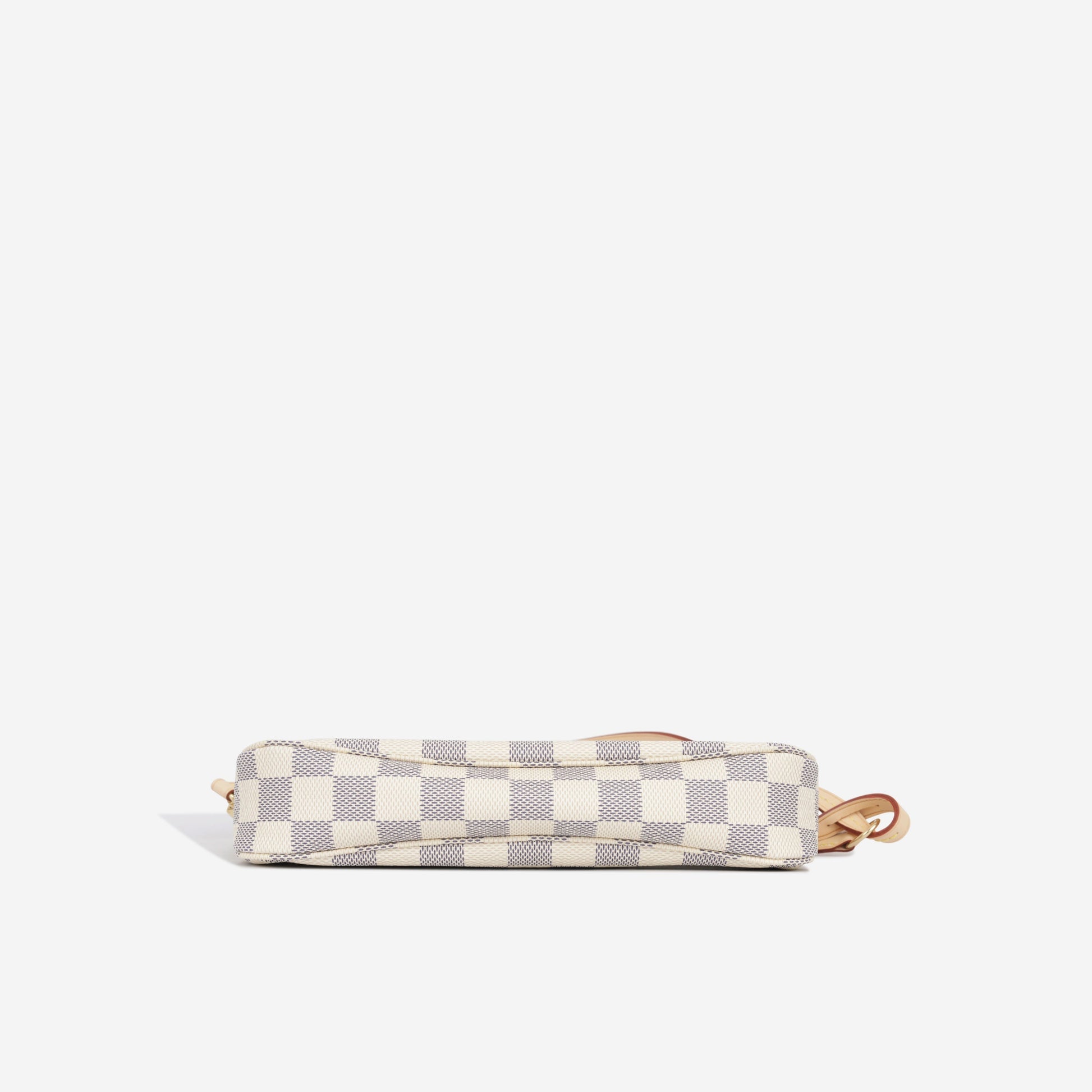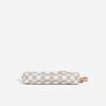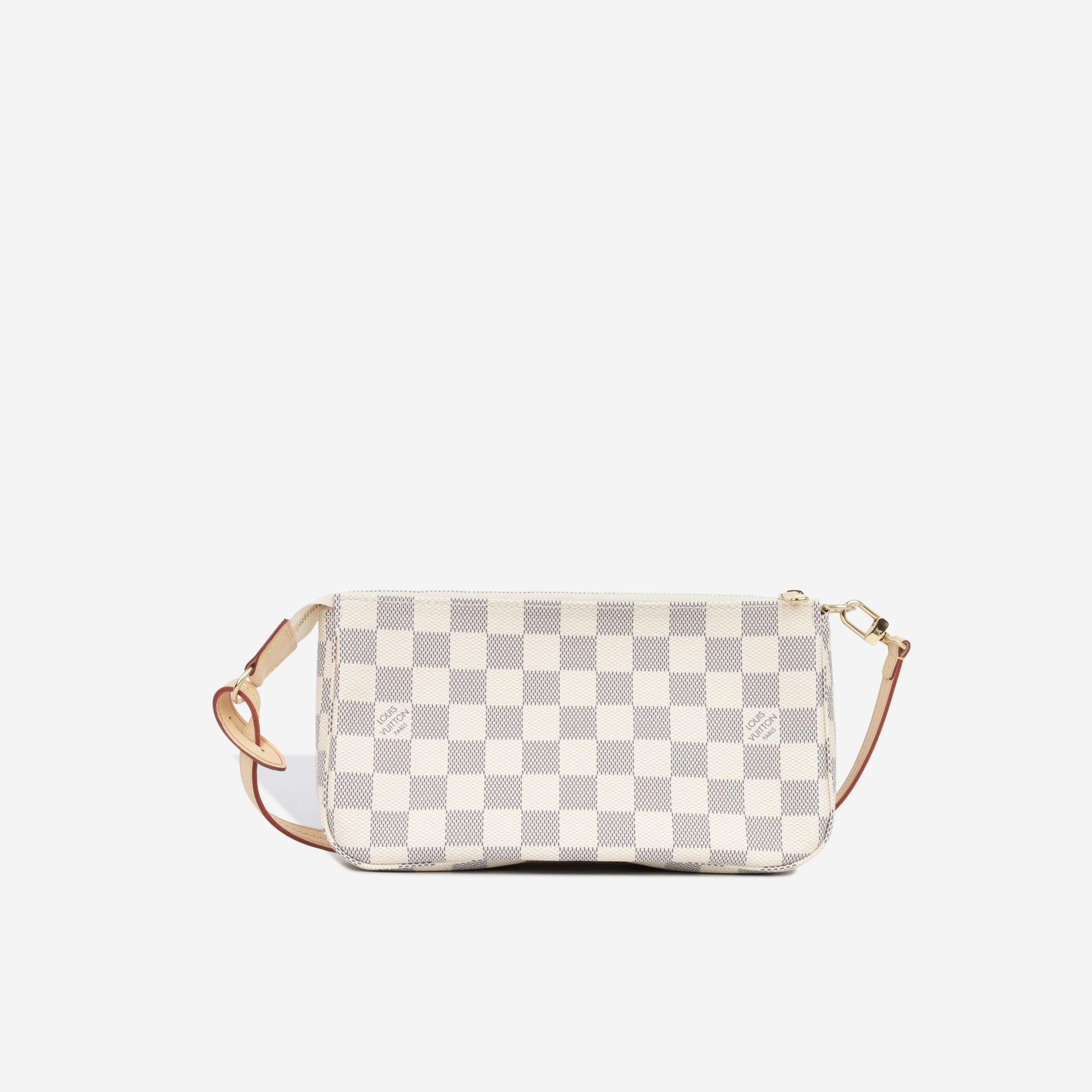 Crafted from the iconic damier azur canvas, this Pochette is a must-have. This design is rich in Louis Vuittons history and it's still such a popular piece. Durable yet effective, with its removable shoulder strap that also turns into a wristlet. The compact size makes this the perfect evening essential.