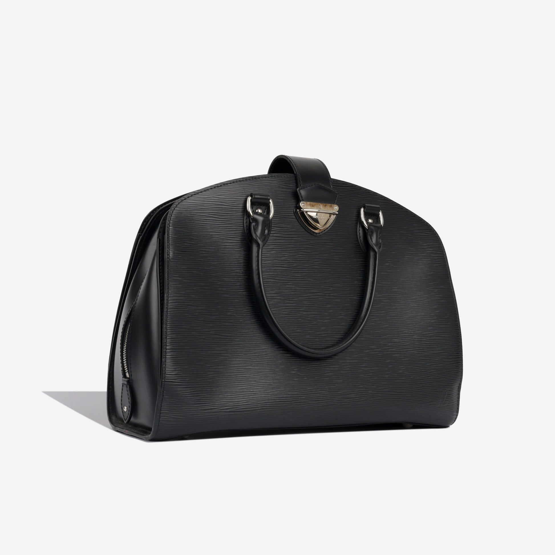 Louis Vuitton presents the chic and sophisticated Black Epi Pont-Neuf GM handbag. A glamorous handbag with an understated appeal, it carries beautiful black epi leather and eye-catching silver hardware. It's an ideal bag for professional settings. Its interior features an array of storage compartments from two compartments separated by a spacious central zip compartment.