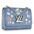 Crafted from denim imitation epi leather and accented by decorative badges and silver-tone hardware, this fun piece from LV is to die-for. Practical and spacious enough to hold all your essentials comfortably inside, this Twist MM is the perfect balance between fashion and function. Playful and energetic, its a bag that will accentuate any chic but simple outfit.