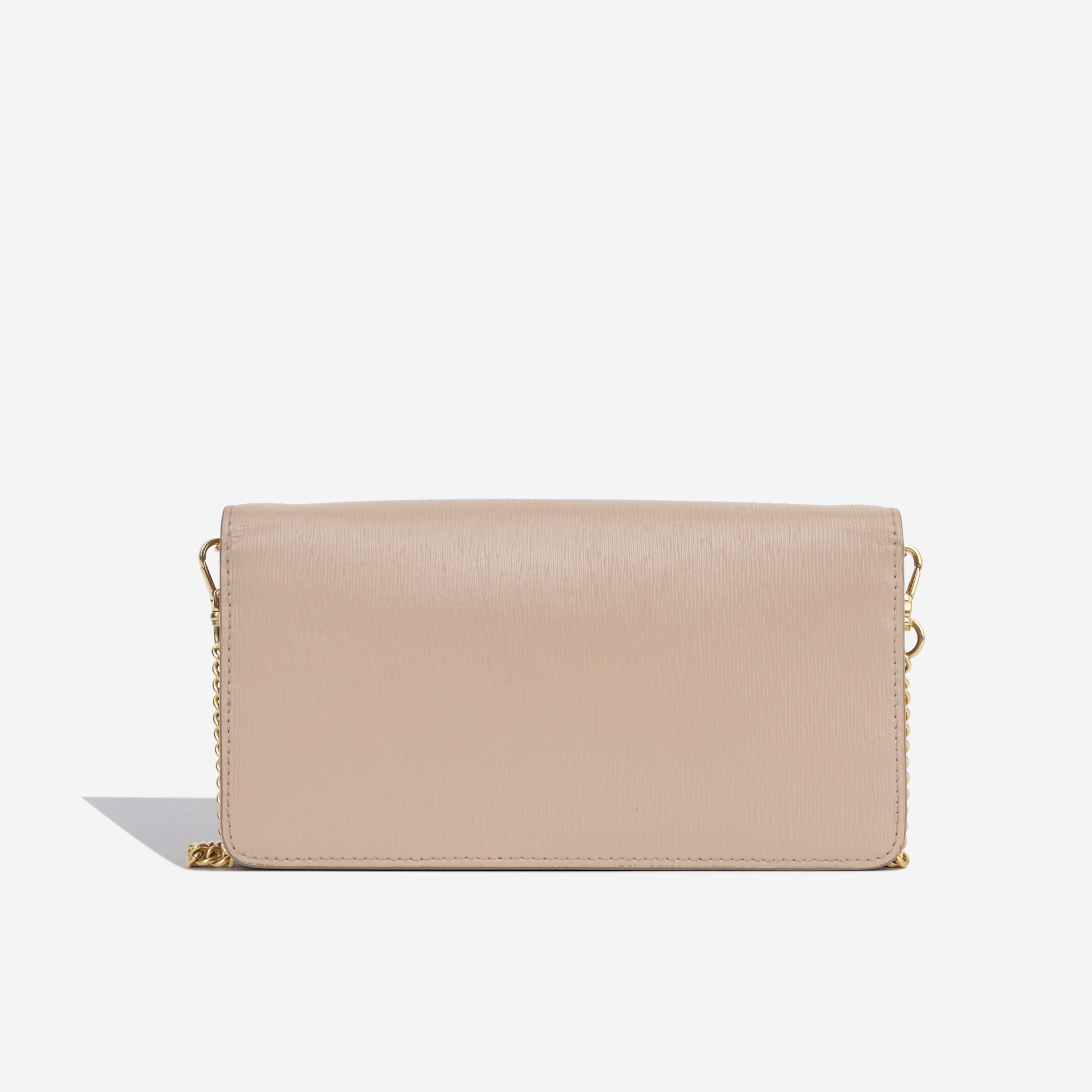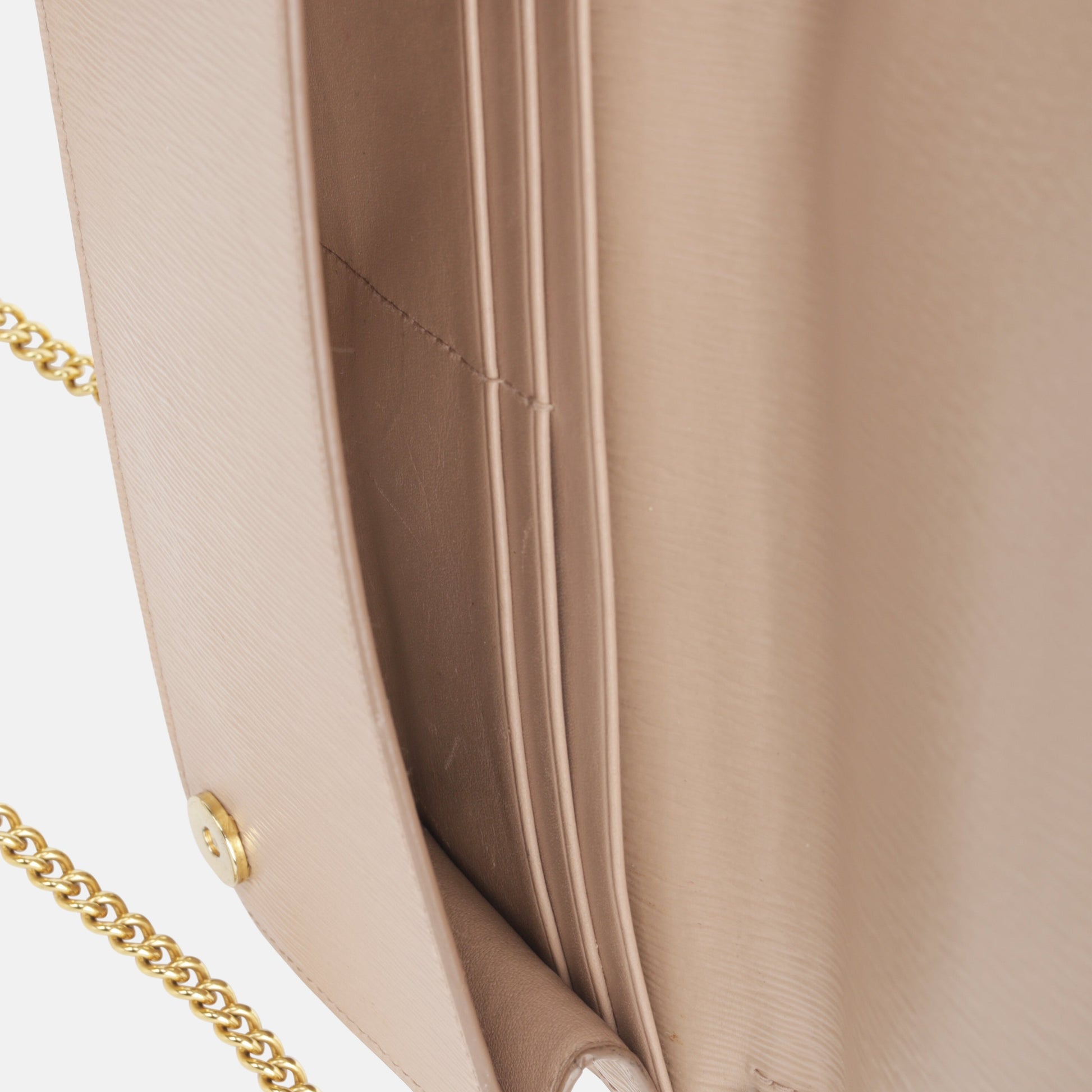 This little crossbody from Prada is the perfect bag for a dressy night out or a casual day piece. Crafted from Saffiano leather in beige, this piece is sleek and fresh. It features the ‘Prada’ logo in gold tone hardware, this bag is the ideal choice for a chic woman with a love for luxury and practicality.