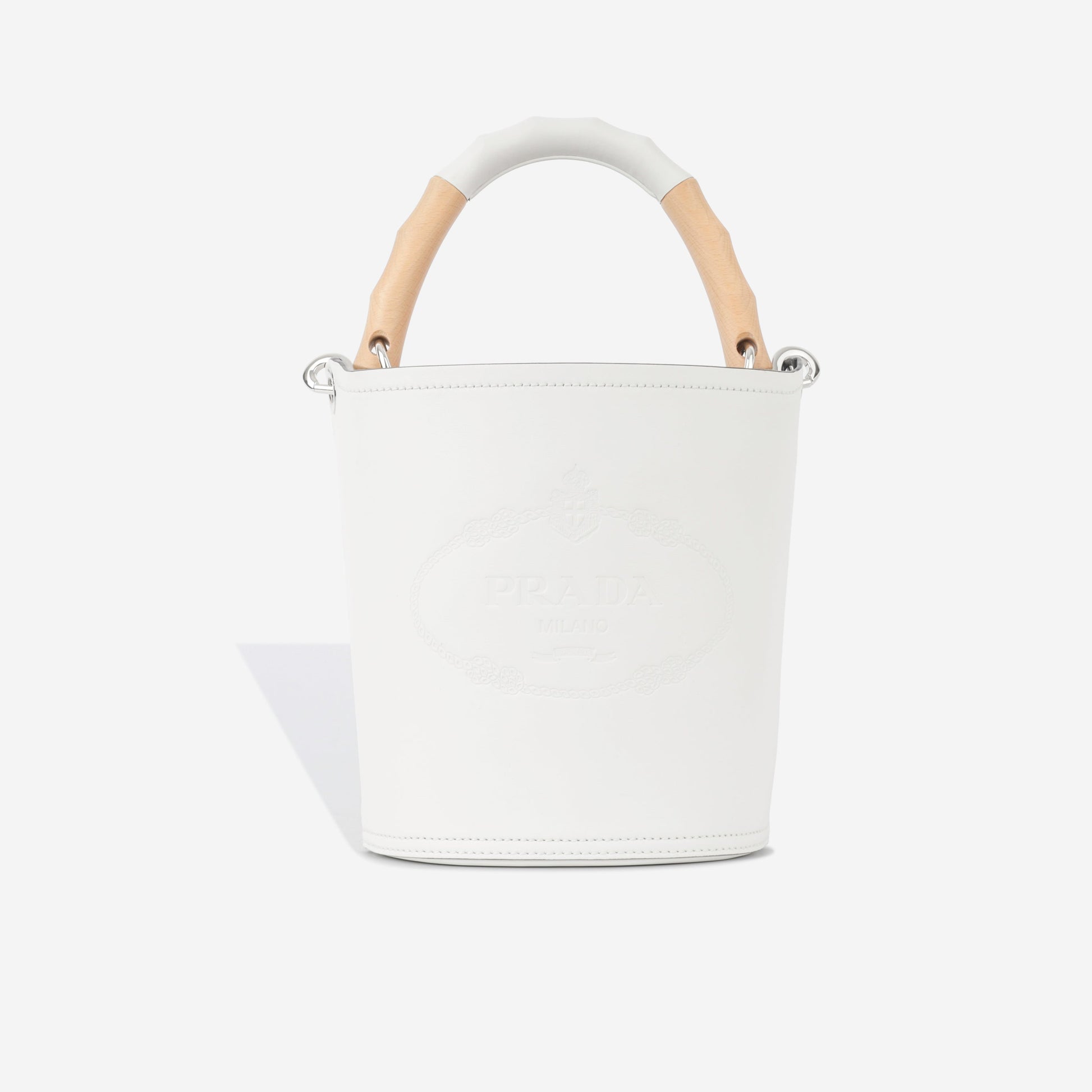 The Tambour bucket bag from Prada is a simple yet beautifully crafted bag and designed to freshen every outfit. This piece is structured, and subtly features the Prada logo embossed into the leather. It can easily hold all your essentials comfortably inside while keeping you sleek, stylish and sophisticated.