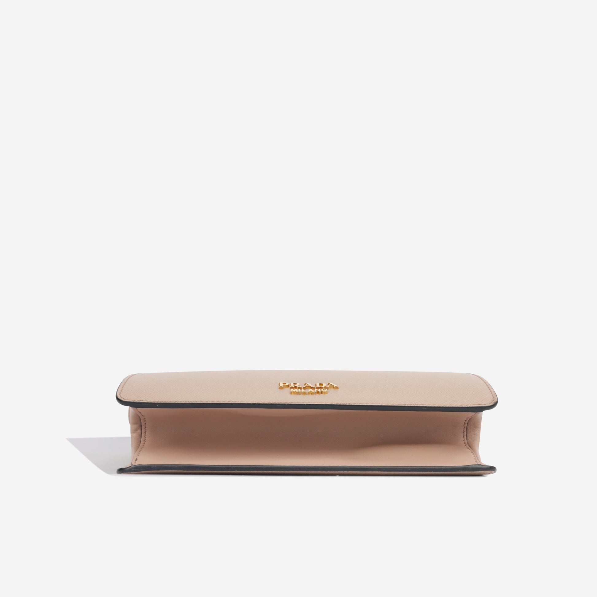 This little bag from Prada is the perfect piece to take with you throughout the day as casual piece. Crafted from pink Saffiano leather and accented with a gold tiger emblem, this piece is playful and unique. It features two straps, a shorter to wear on the elbow or a longer strap for hands free wear.