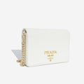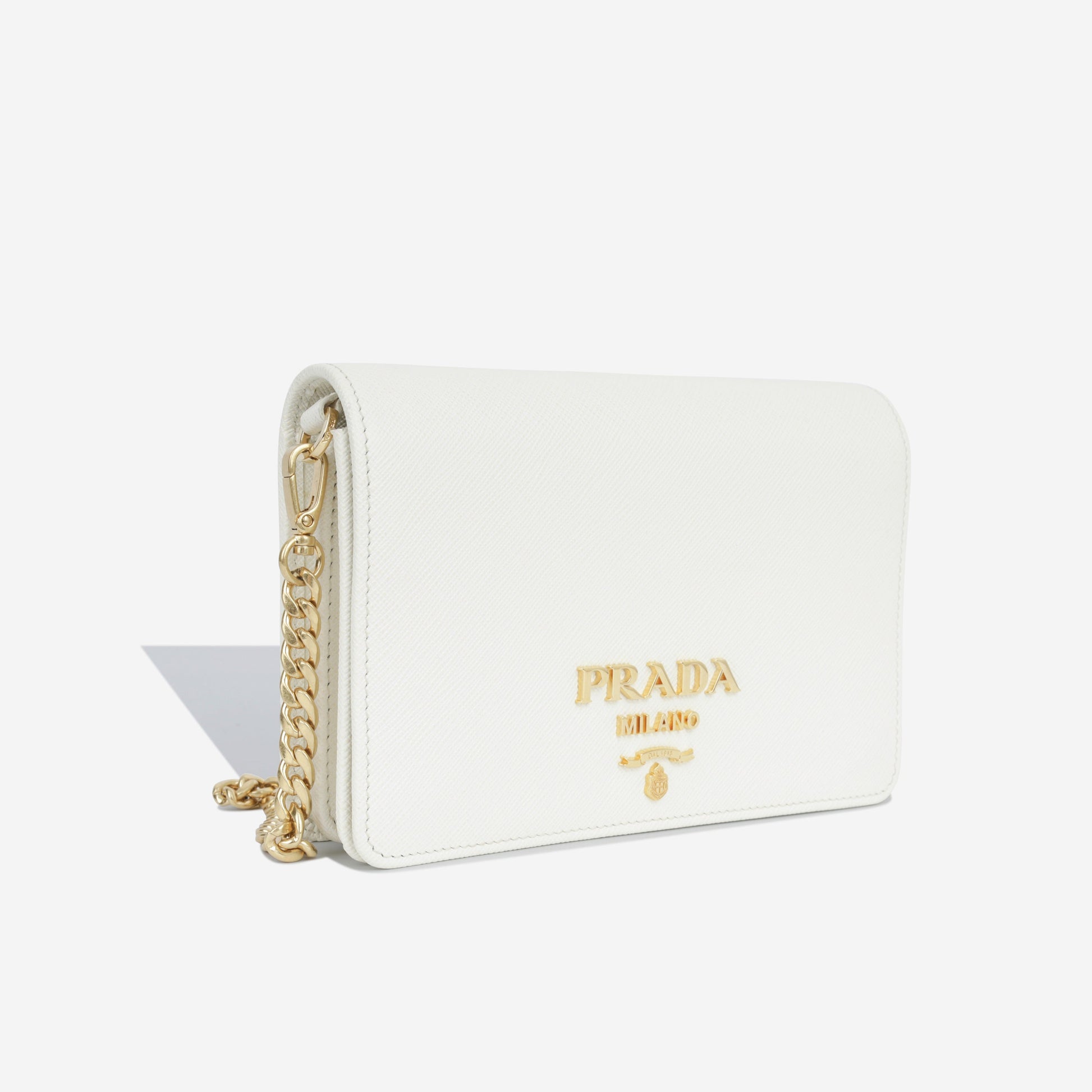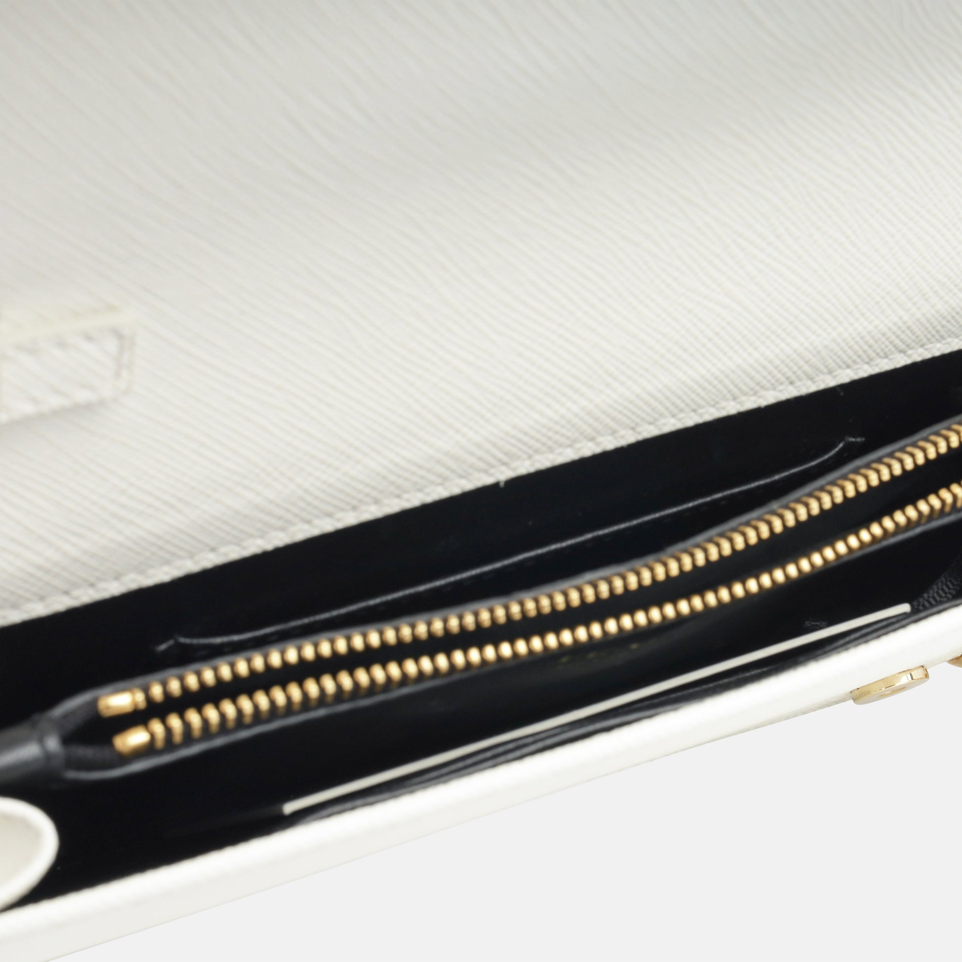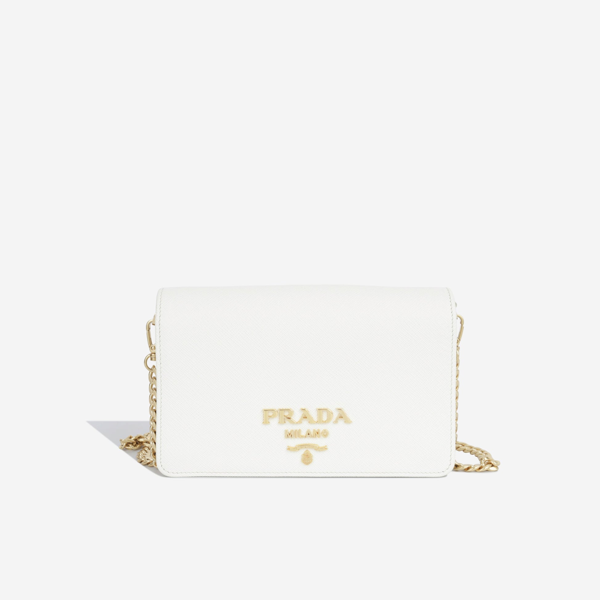 This little crossbody from Prada is the perfect bag for a dressy night out or a casual day piece. Crafted from Saffiano leather in white, this piece is sleek and fresh. It features the ‘Prada’ logo in gold tone hardware, this bag is the ideal choice for a chic woman with a love for luxury and practicality.
