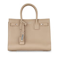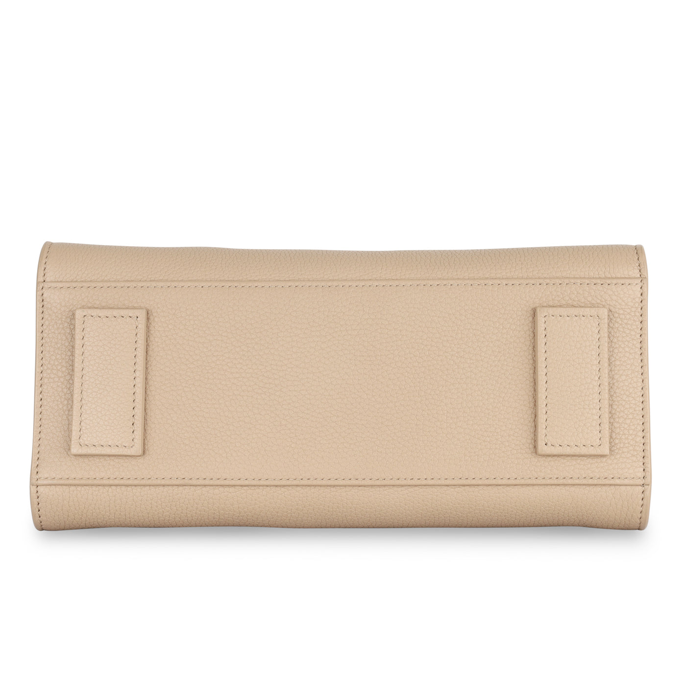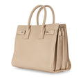 Widely renowned for its contemporary take on traditionally understated glamour, Saint Laurent brings us this baby version of the much celebrated sac du jour – falling between the Mini and Small sizes available. This tote is full of character with its grained leather and adornment of silver toned hardware. Its interior holds multiple storage compartments and is lined in beige suede. Style this bag with your favourite day outfit or detach its shoulder strap to create a casual evening look.