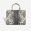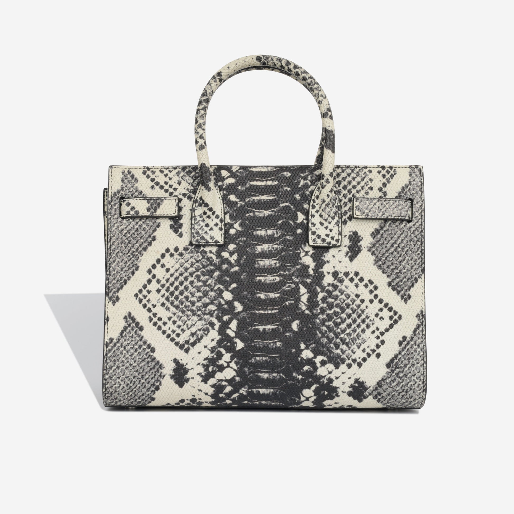 Widely renowned for its contemporary take on traditionally understated glamour, Saint Laurent brings us this baby version of the much celebrated sac du jour – falling between the Mini and Small sizes available. This tote is full of character with its python embossed leather and adornment of silver toned hardware. Its interior holds multiple storage compartments and is lined in leather. Style this bag with your favourite day outfit or detach its shoulder strap to create a casual evening look.