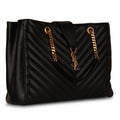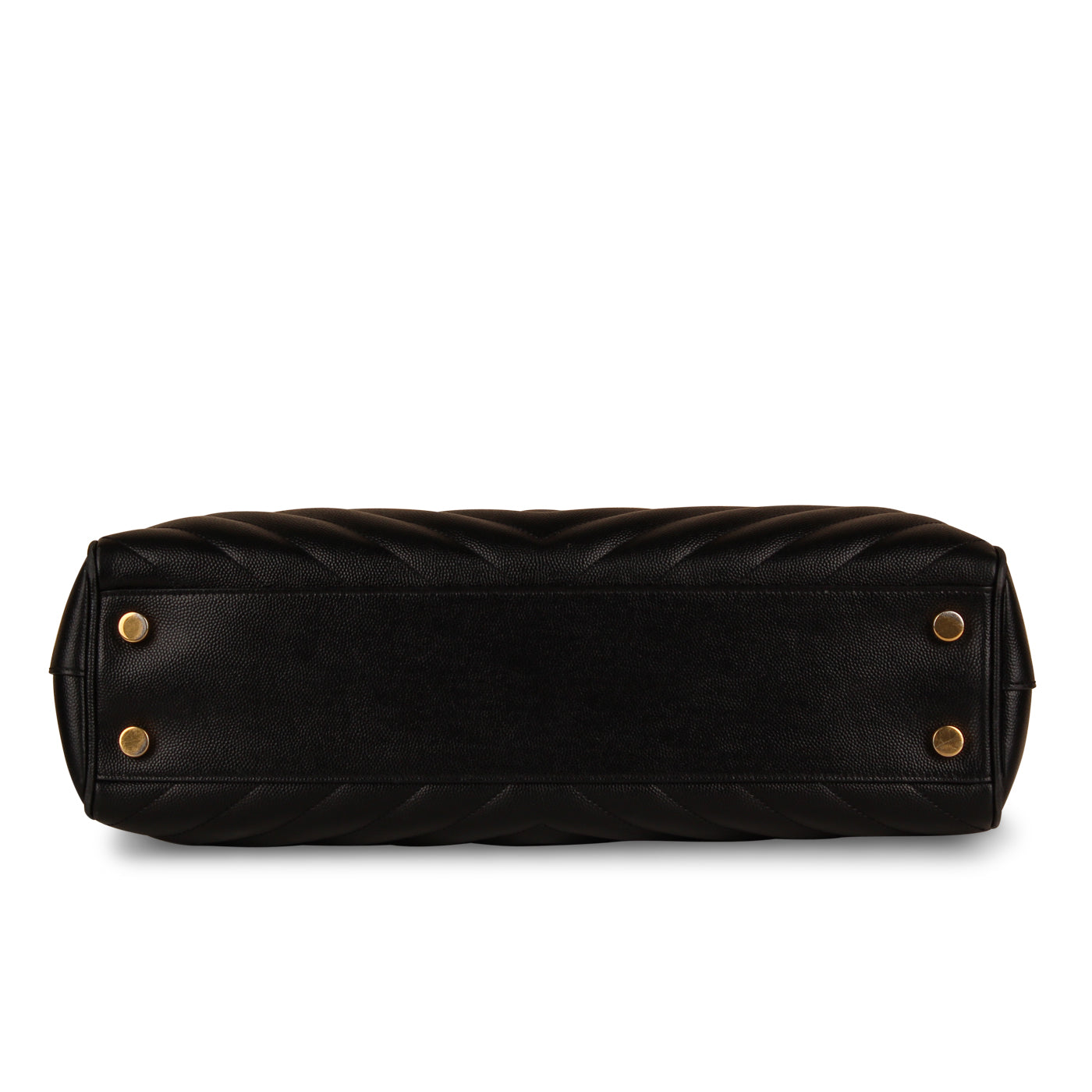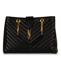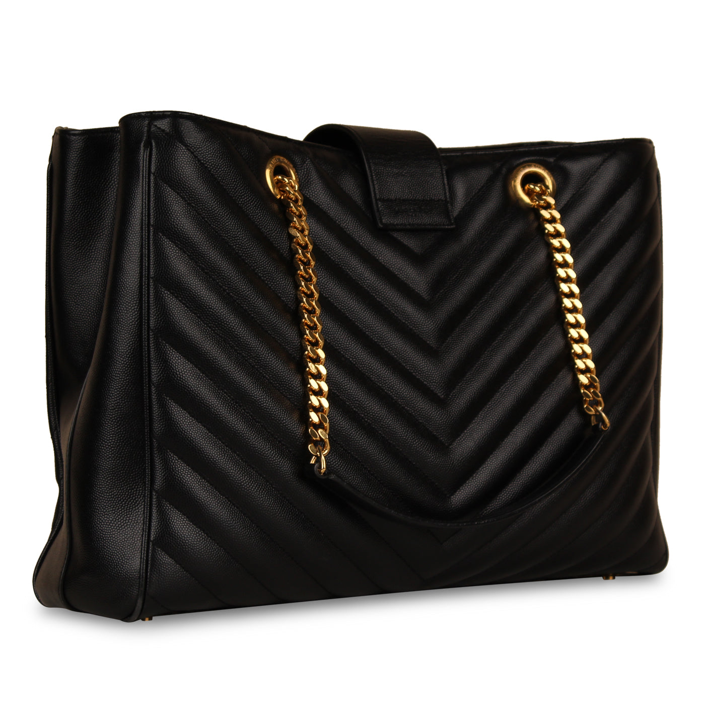 Carefully crafted from smooth leather with a chevron design, the Cassandre shopper tote is the newest addition to the LouLou collection. Fans of this signature line can now carry their whole worlds with them everywhere they go by throwing whatever they may need throughout the day inside the spacious interior. With its classic, prominent YSL logo embossed on the closing strap, this is a true must-have for any Saint Laurent lover. The Cassandre shopping tote is sleek, sophisticated and stylish - exuding the perfect mix of elegance and edginess. The perfect bag for any woman with a love for luxury and high fashion!