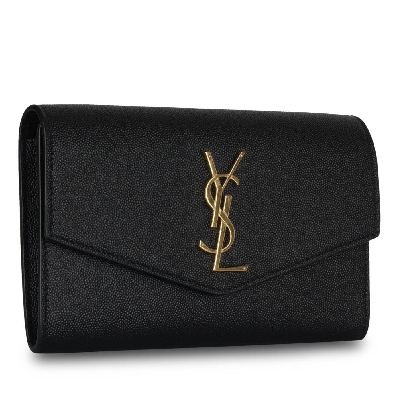 Acclaimed for its understated aesthetic and minimalist silhouette, the Uptown line from Saint Laurent is the ideal accessory for any woman with a chic, simple sense of style and a love for statement luxury. Crafted from black grained leather and complimenting gold hardware, the Uptown WOC is the perfect mini bag to add a finishing toiuch to your outfit.