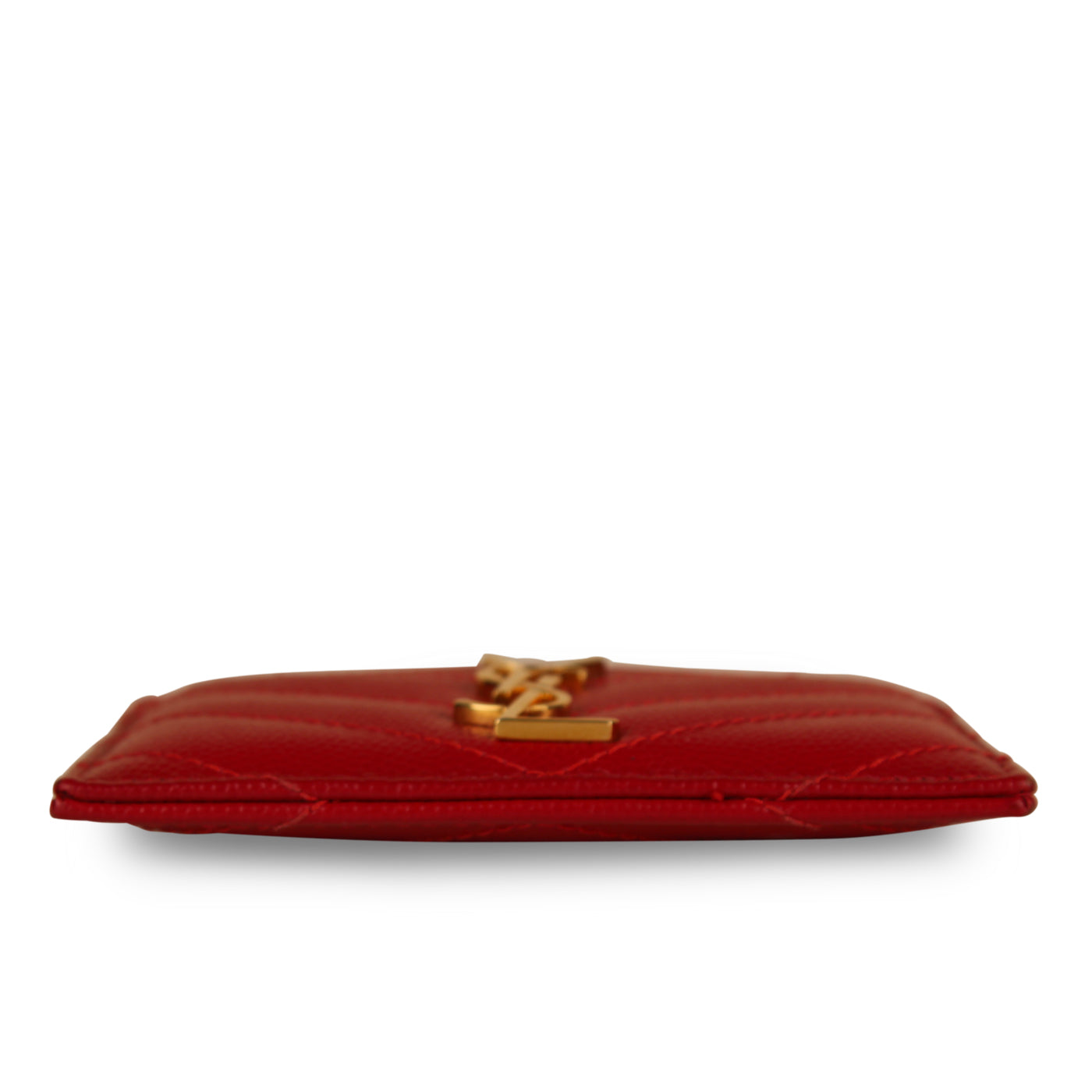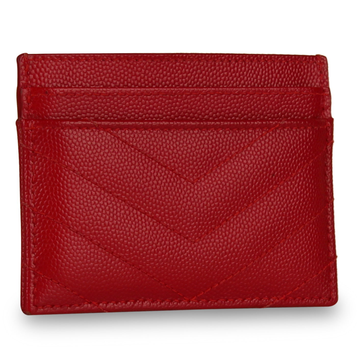 Crafted from Red Grained Chevron Leather, this card holder from Saint Laurent is a true must have. With the signature YSL logo in gold tone hardware, this piece is sleek, stylish and sophisticated. This card holder is the perfect piece to keep all your cards safe, in style. This little piece is a well worthy addition to any luxury handbag collection.