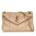 The Puffer Bag in Small is a beautiful new addition to the YSL Collection. This piece is perfect for daytime casual use – a great bag to grab on the go. This Saint Laurent comes with the iconic YSL intertwined logo in gold hardware and can be worn cross body with one strap, or with the double chain for a shorter look.