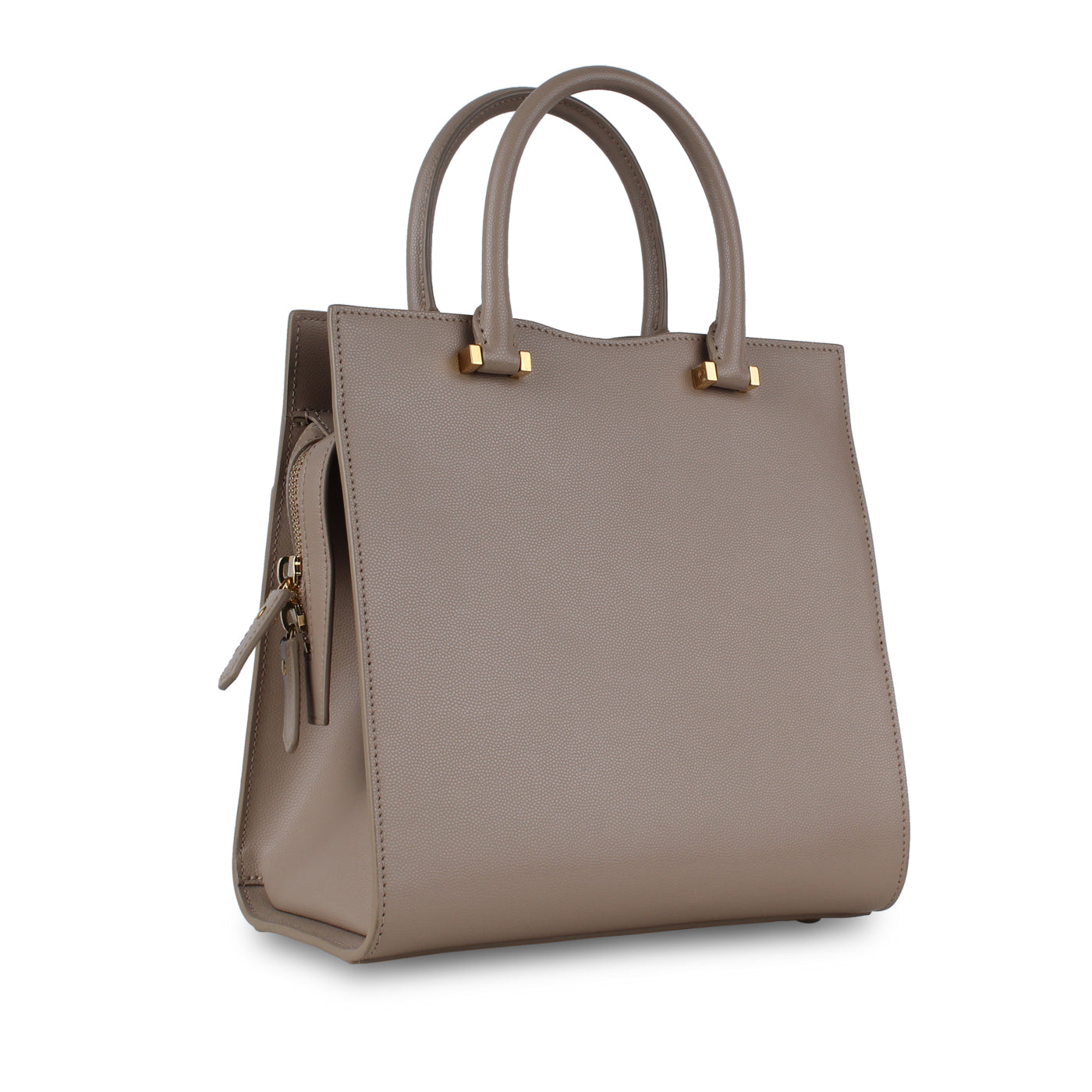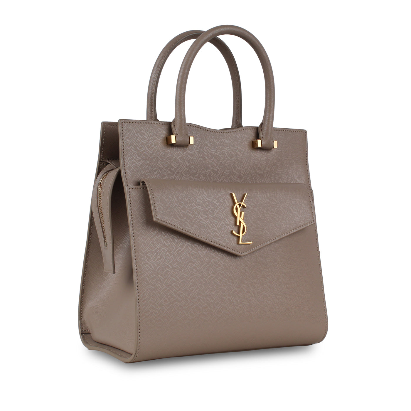 Acclaimed for its understated aesthetic and minimalist silhouettes, the Uptown Tote from Saint Laurent is the ideal accessory for any woman with a chic, simple sense of style and a love for discreet luxury. Crafted from grained beige calfskin leather, the Shopping bag is a prime example of an "if you know, you know" aesthetic. With its feature embossed logo and two top handles, this bag is the ideal accessory for you if you're an individual with a lot to carry. Spacious enough to hold your daily essentials inside, the Uptown Tote bag is sleek, sophisticated, and practical. A true must-have for any Saint Laurent lover!