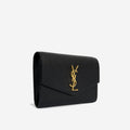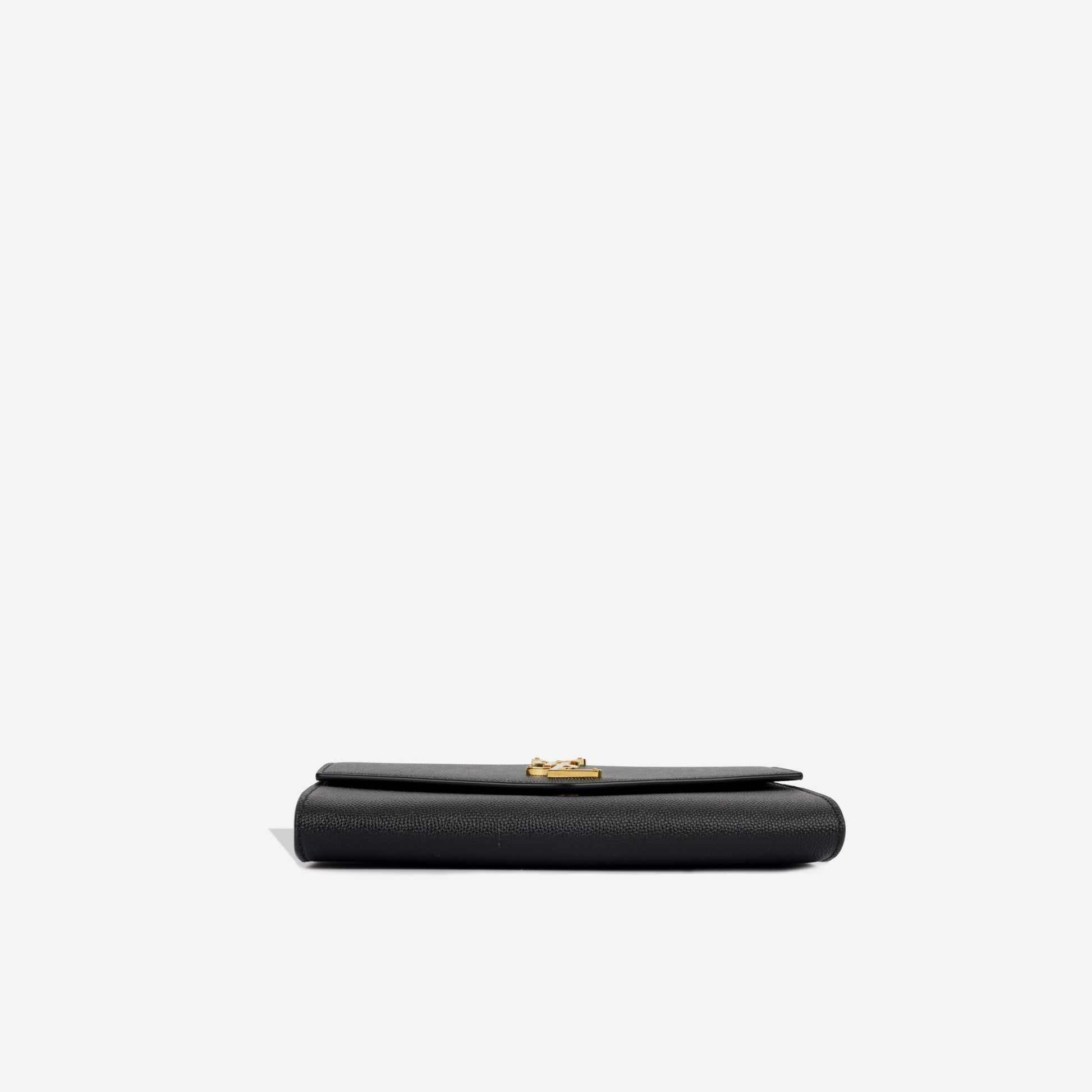 Acclaimed for its understated aesthetic and minimalist silhouette, the Uptown line from Saint Laurent is the ideal accessory for any woman with a chic, simple sense of style and a love for statement luxury. Crafted from black grained leather and complimenting gold hardware, the Uptown WOC is the perfect mini bag to add a finishing toiuch to your outfit.