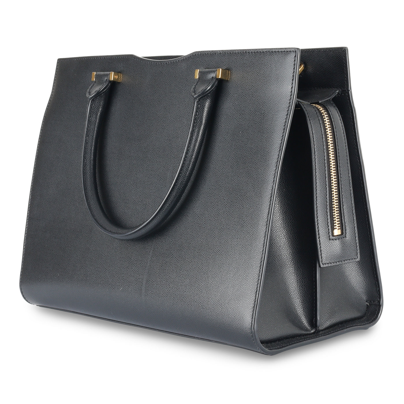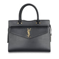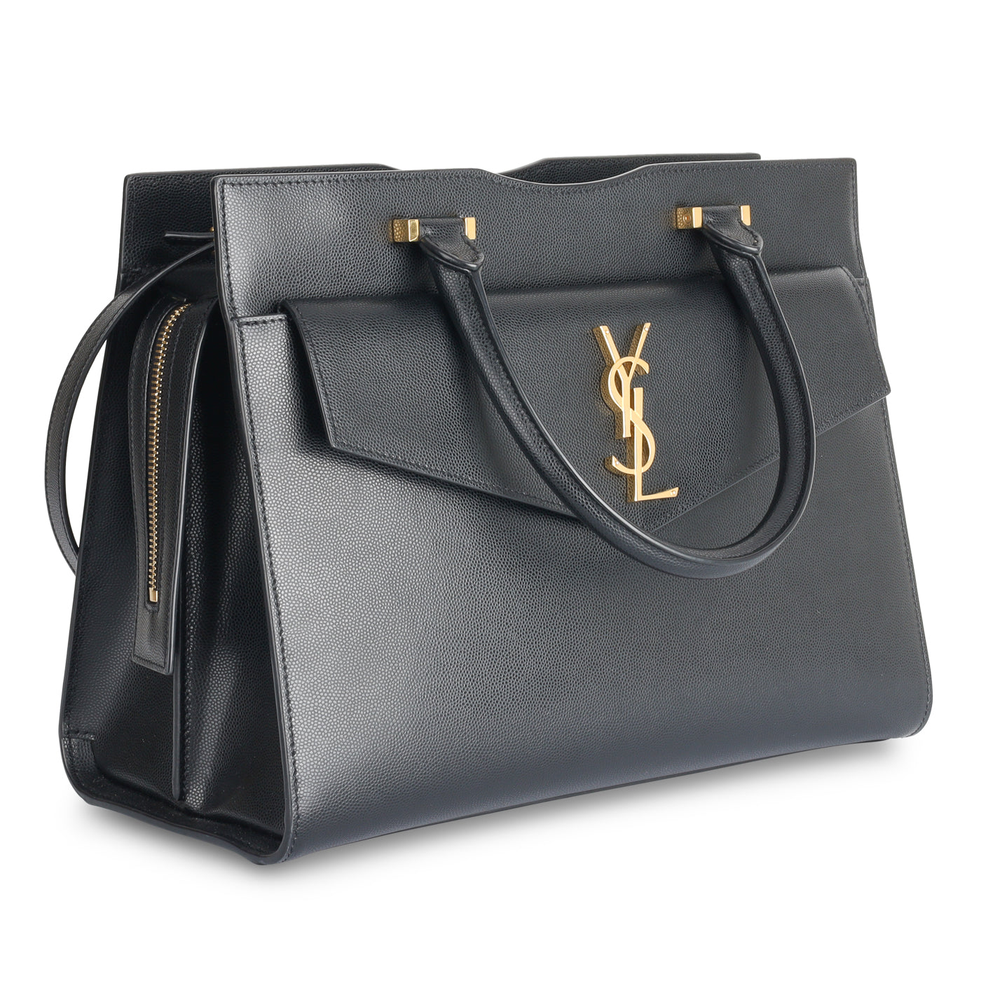 Acclaimed for its understated aesthetic and minimalist silhouettes, the Uptown Tote from Saint Laurent is the ideal accessory for any woman with a chic, simple sense of style and a love for discreet luxury. Crafted from textured black calfskin leather, the Uptown Tote is a perfect piece for you if you're an individual with a lot to carry.