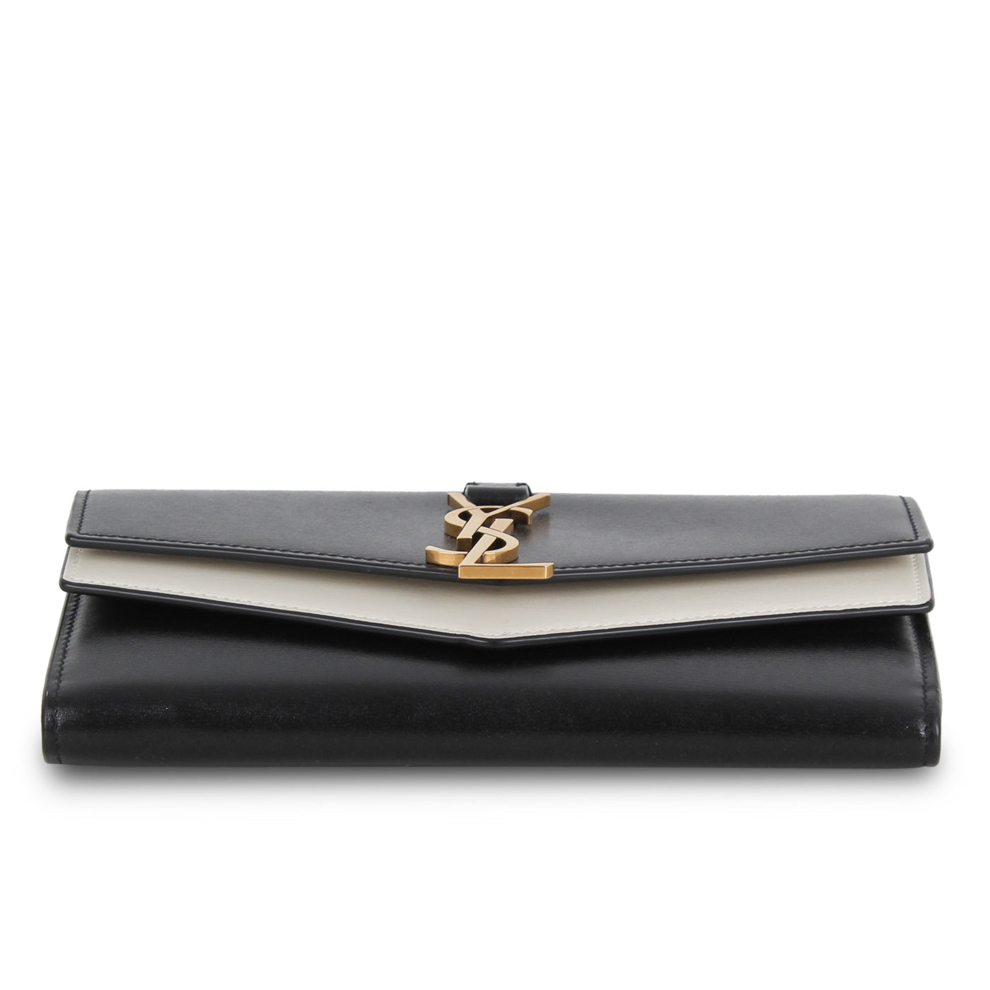A classic piece from Saint Laurent, the long wallet is the the most glamorous accessory to keep all of your cards and money safe. Created from soft, calfskin leather with a pop of cream and a gold YSL logo. This piece can also double up as a small clutch bag, and who doesn't love a two-in-one! This bag is truly a must-have piece and a worthy addition to any designer accessories collection.