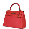 Hermes Kelly Retourne 28 Rouge Pivoine Togo Gold Hardware