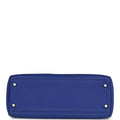 The interior is lined with Bleu Electrique chevre and features one zip pocket with an Hermes engraved pull and two open pockets on the opposite side.