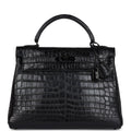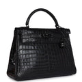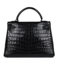 Hermes Kelly Retourne 32 SO Black Matte Niloticus Crocodile Black Hardware