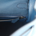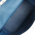 The interior is lined with Bleu De Prusse chevre and features one zip pocket with an Hermes engraved pull and two open pockets on the opposite side.